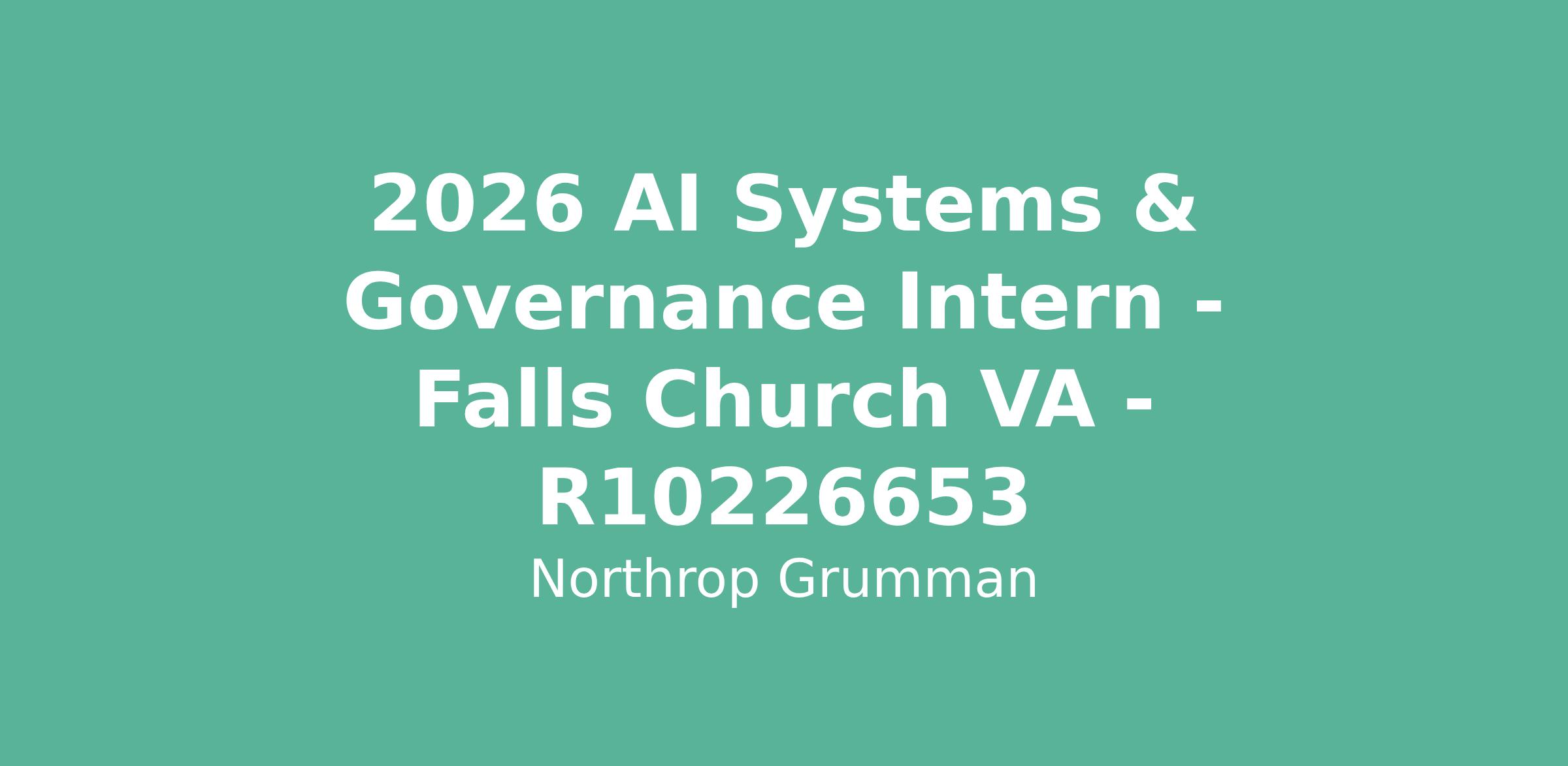 2026 AI Systems & Governance Intern - Falls Church VA - R10226653