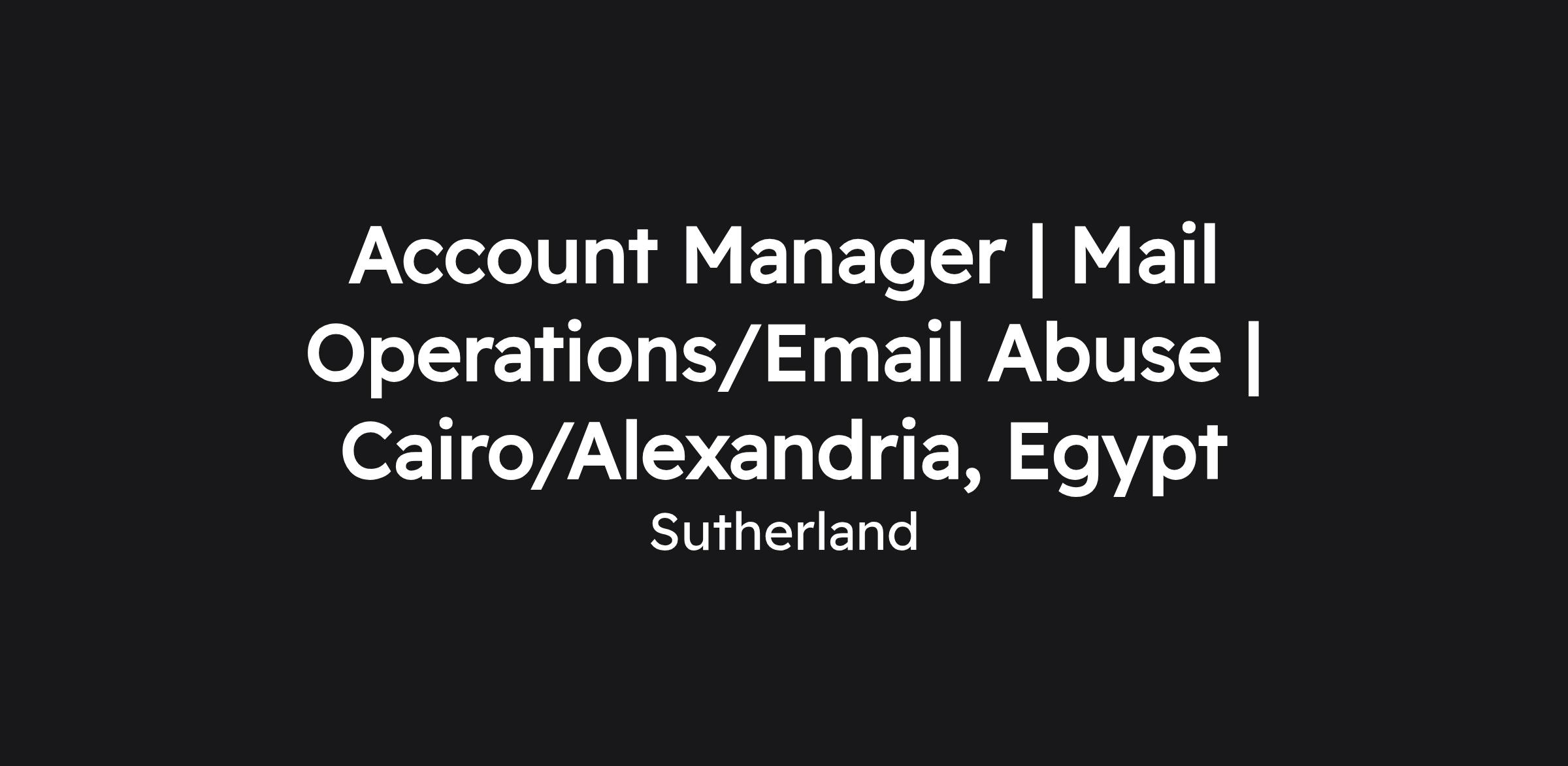 Account Manager | Mail Operations/Email Abuse | Cairo/Alexandria, Egypt