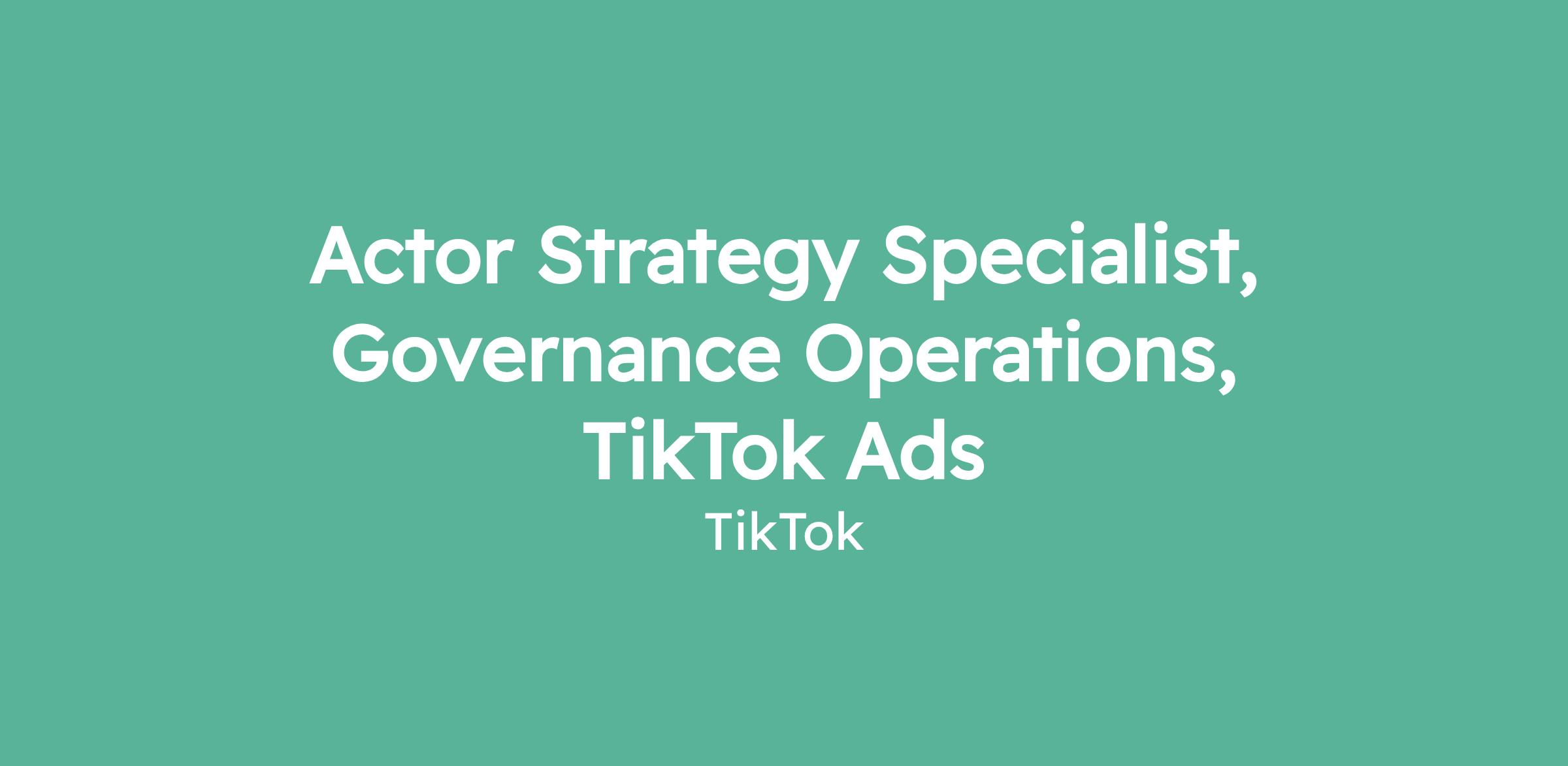 Actor Strategy Specialist, Governance Operations, TikTok Ads