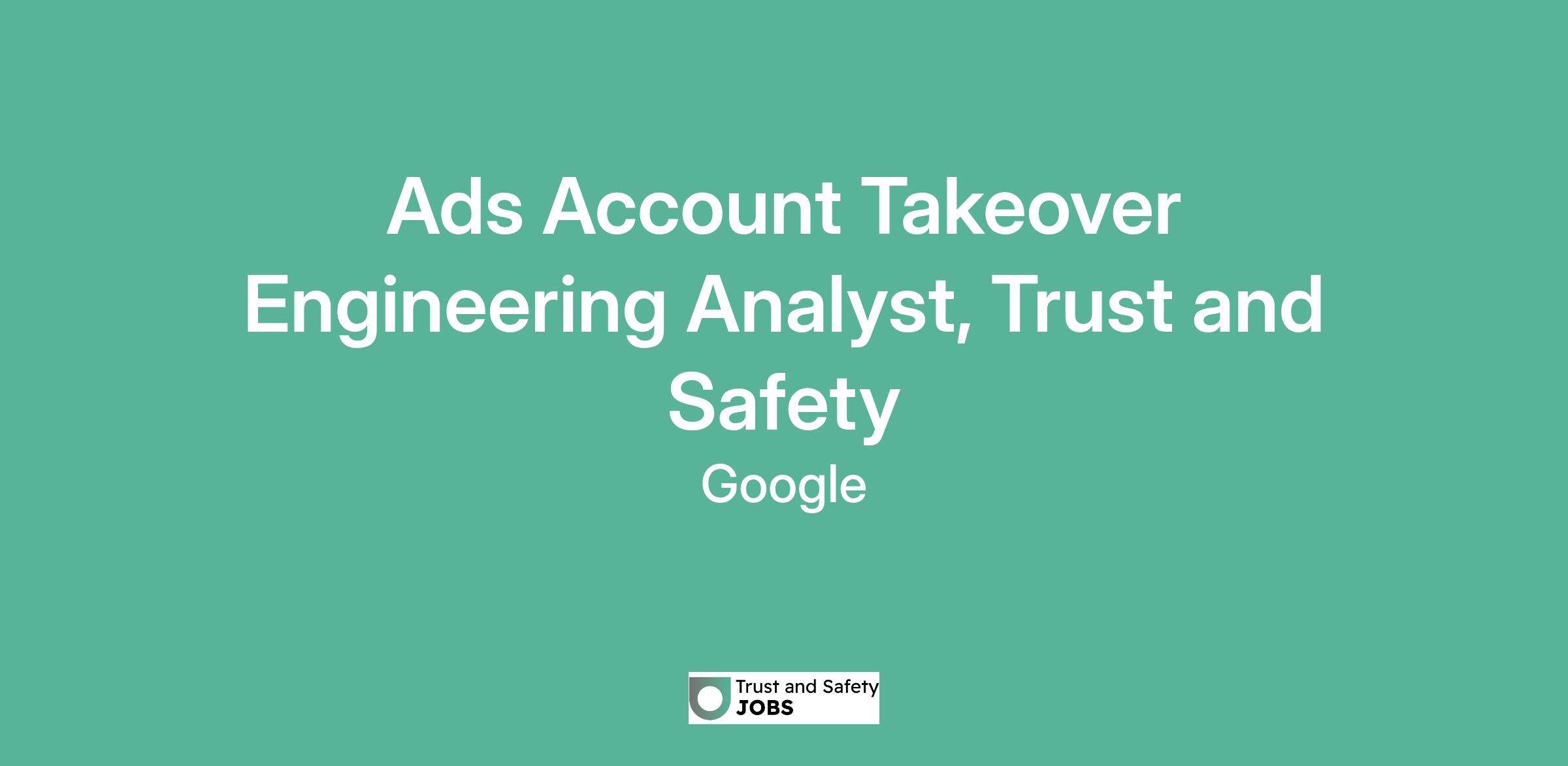 Ads Account Takeover Engineering Analyst, Trust and Safety
