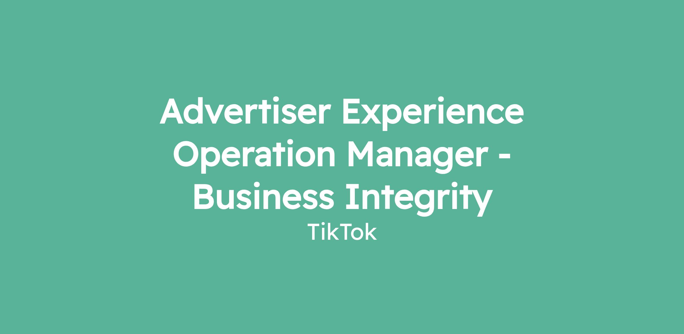 Advertiser Experience Operation Manager - Business Integrity