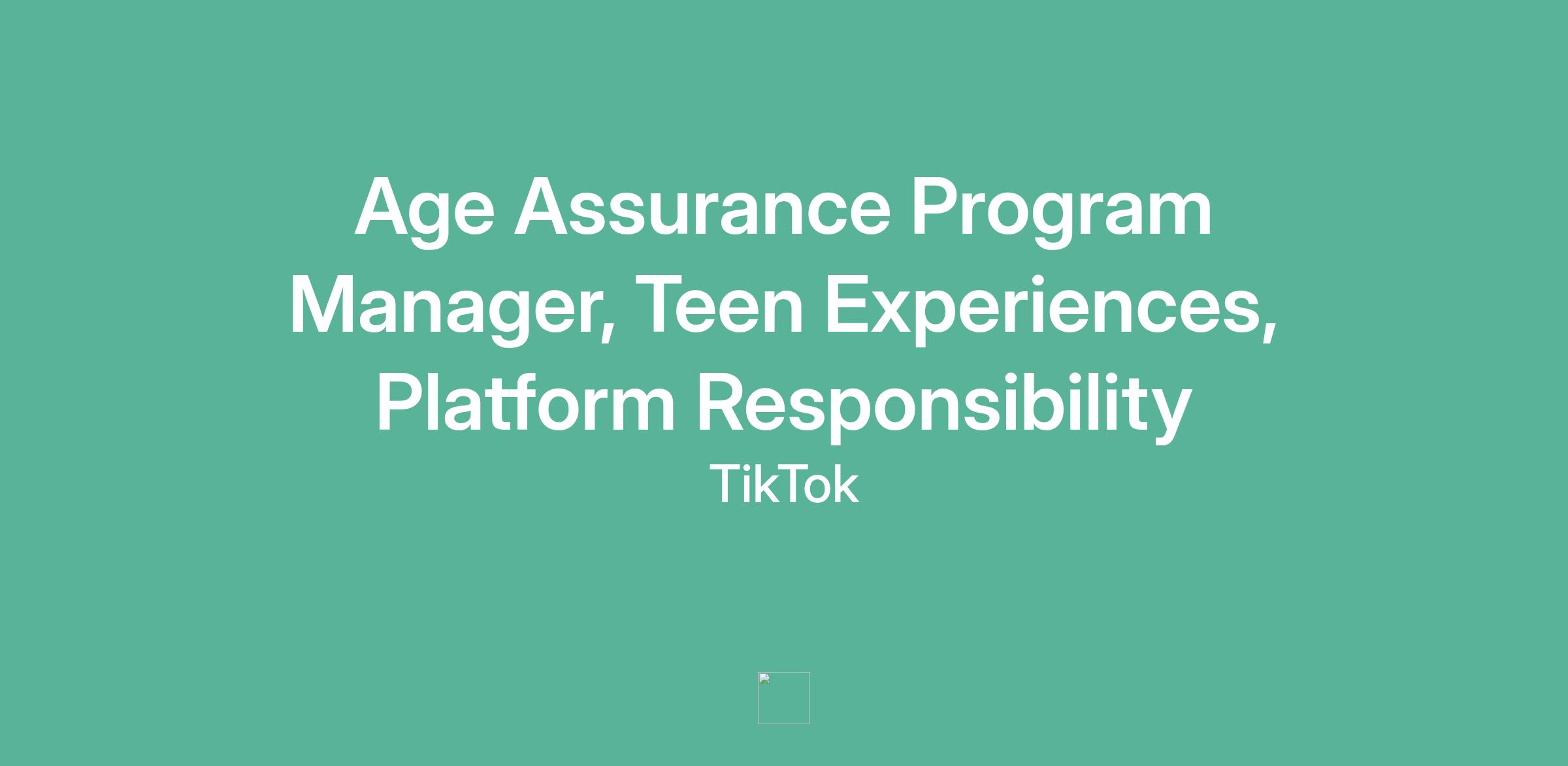 Age Assurance Program Manager, Teen Experiences, Platform Responsibility