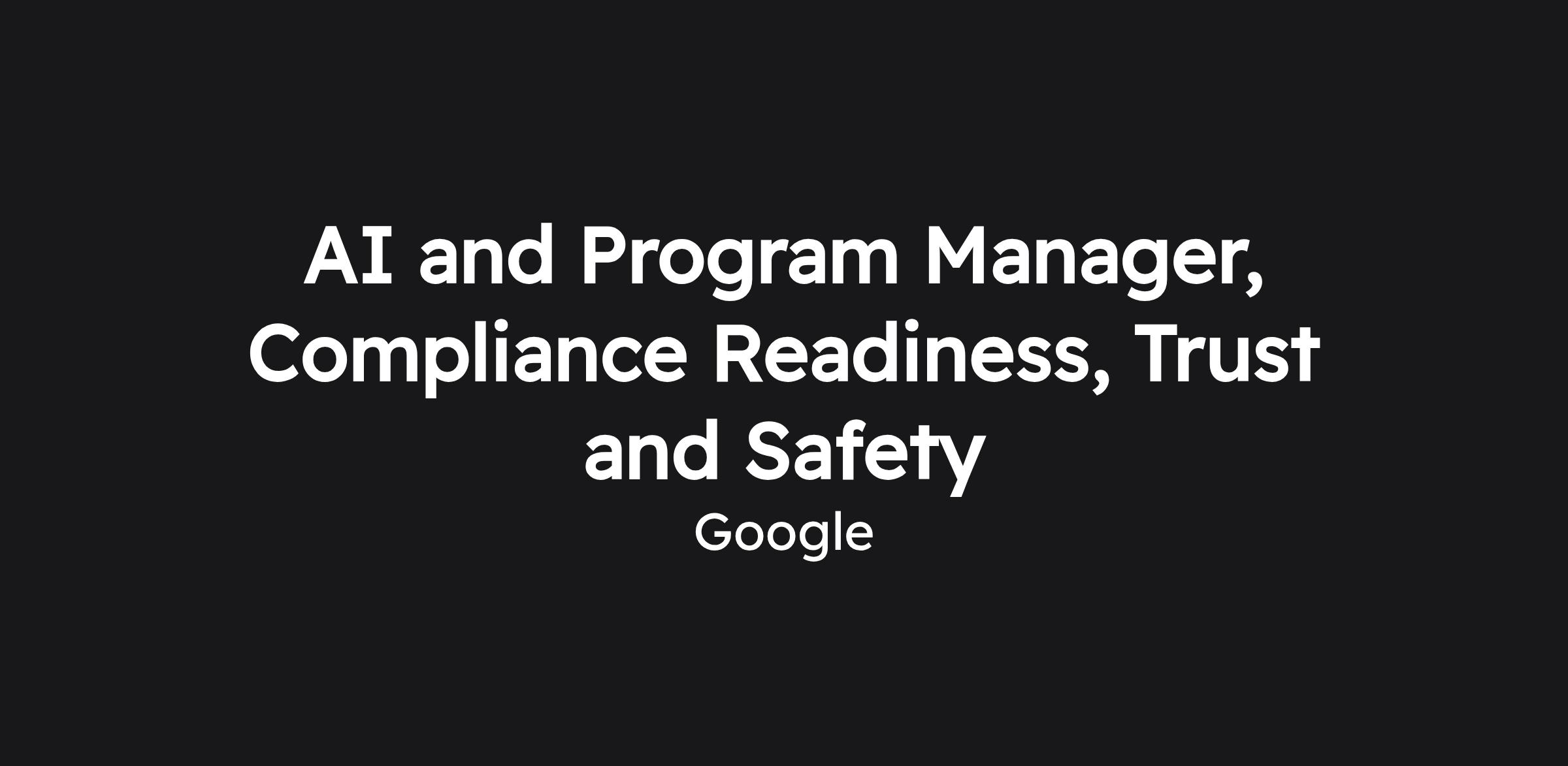 AI and Program Manager, Compliance Readiness, Trust and Safety