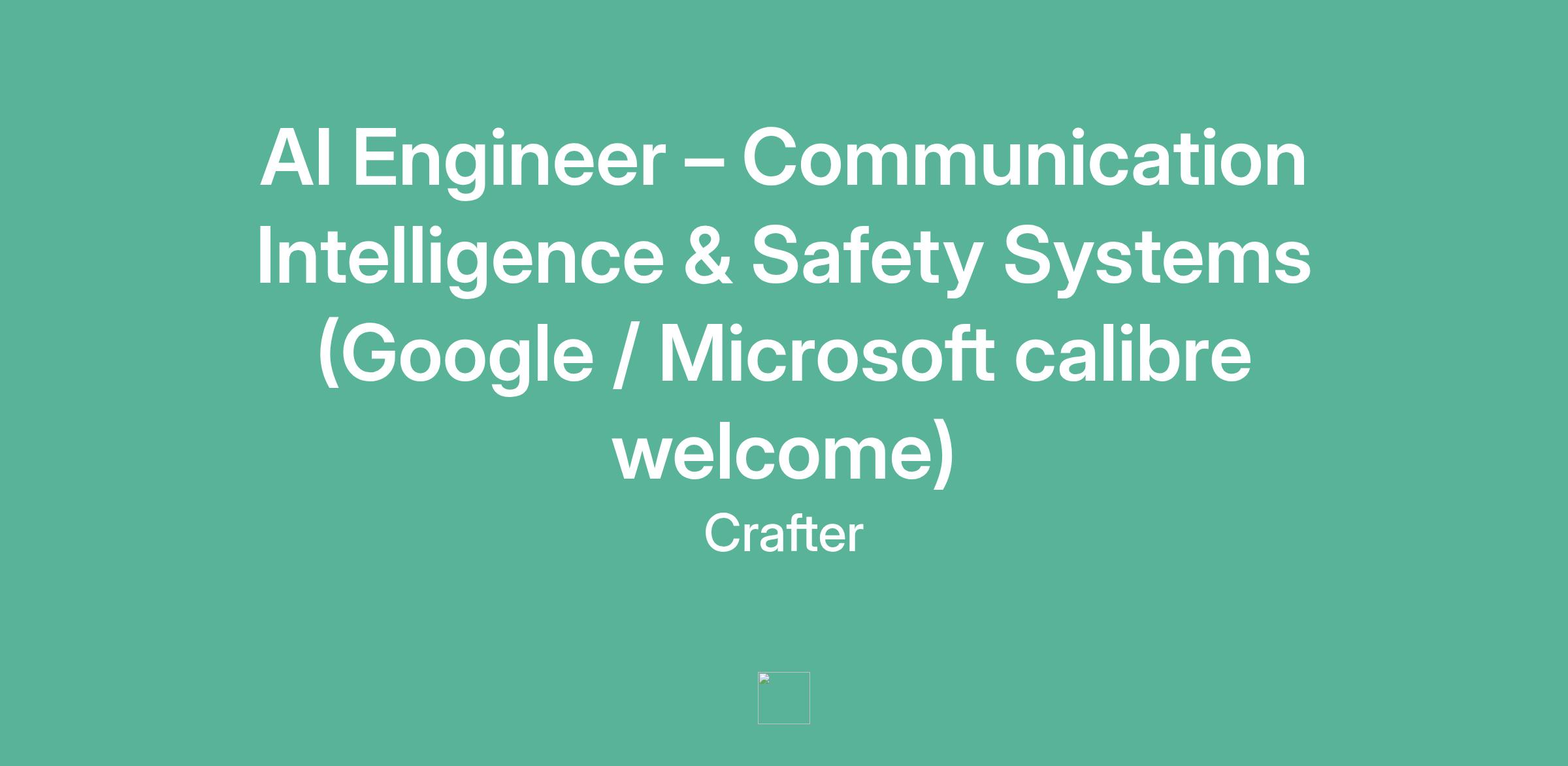 AI Engineer – Communication Intelligence & Safety Systems (Google / Microsoft calibre welcome)