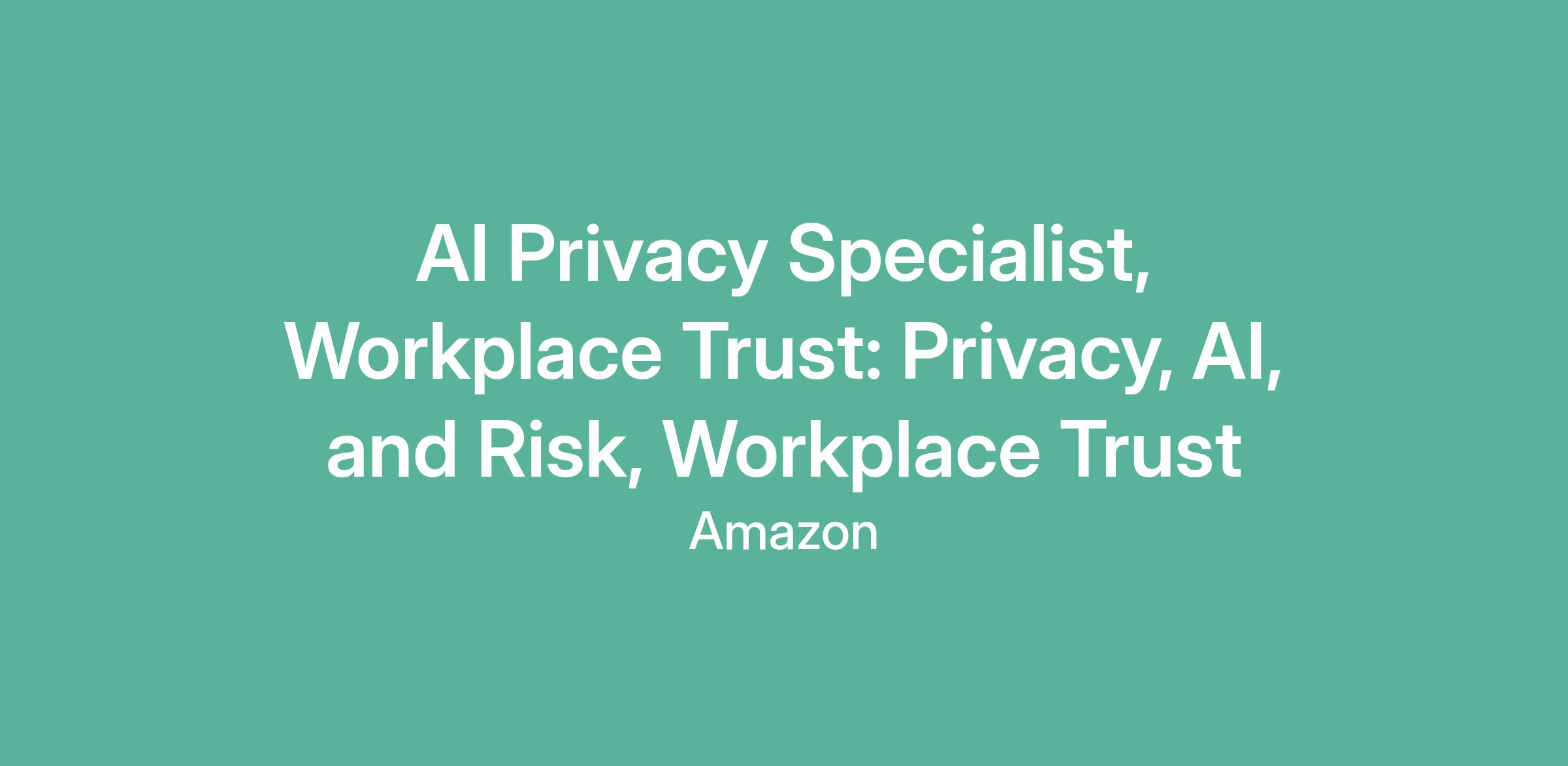 AI Privacy Specialist, Workplace Trust: Privacy, AI, and Risk, Workplace Trust