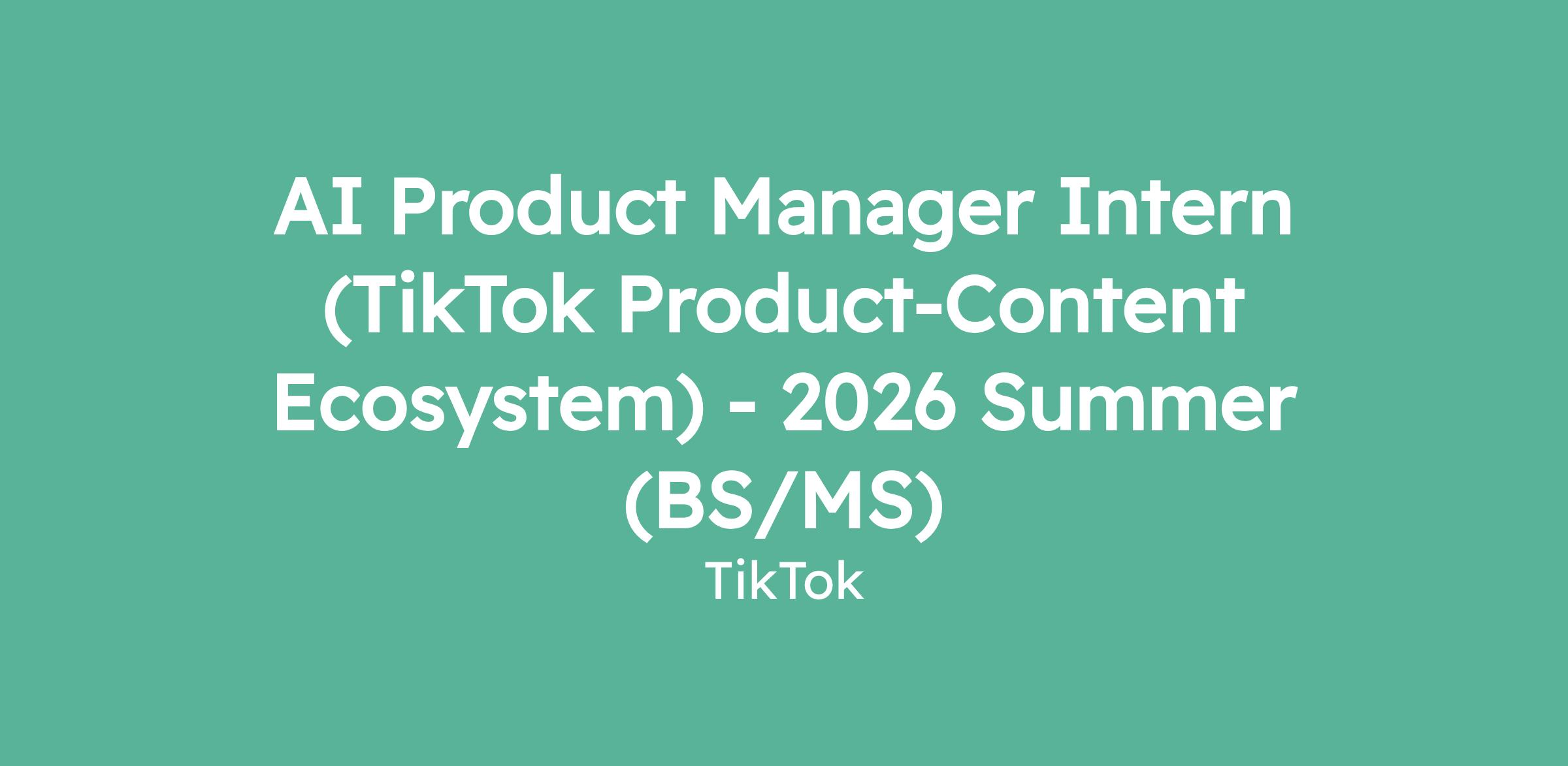 AI Product Manager Intern (TikTok Product-Content Ecosystem) - 2026 Summer (BS/MS)