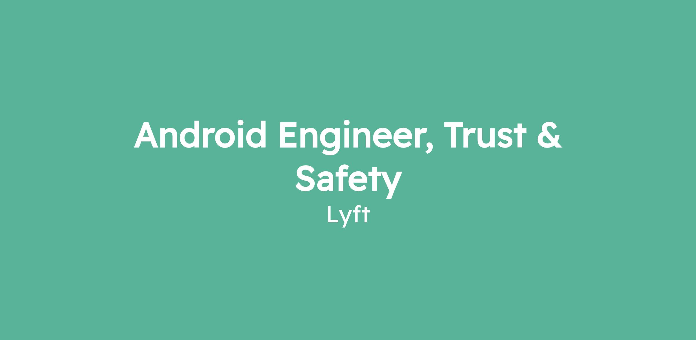 The Trust & Safety function at Lyft is dedicated to keeping every Lyft ride safe for both riders and drivers. We build and maintain the tools, features, and systems that deter bad actors, protect vulnerable populations, and reinforce trust across the platform. As an Android Engineer working on Trust & Safety, you'll work at the intersection of product, design, engineering, and policy to ship high-impact safety features to millions of users.