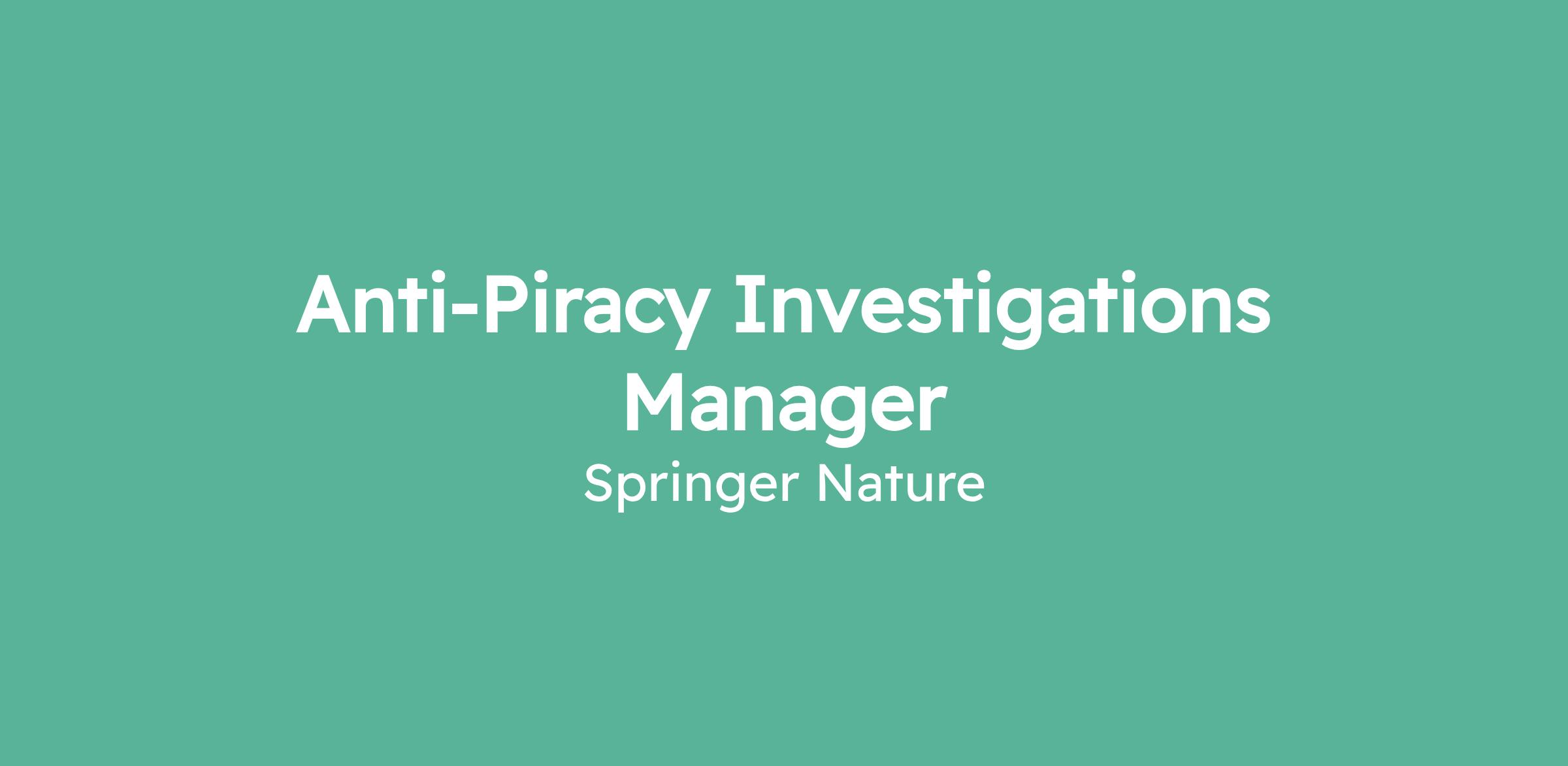 The Anti-Piracy Team is part of the General Counsel’s Office; it is charged with the global protection of Springer Nature Group content and assets against piracy. The team is currently based in London, UK, and Shanghai, China, we are also currently recruiting in Delhi, India.