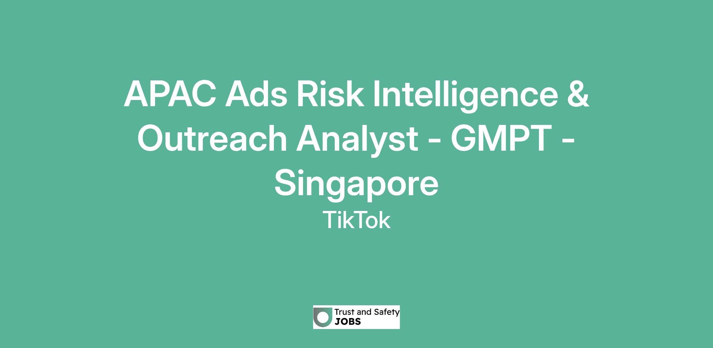 APAC Ads Risk Intelligence & Outreach Analyst - GMPT - Singapore