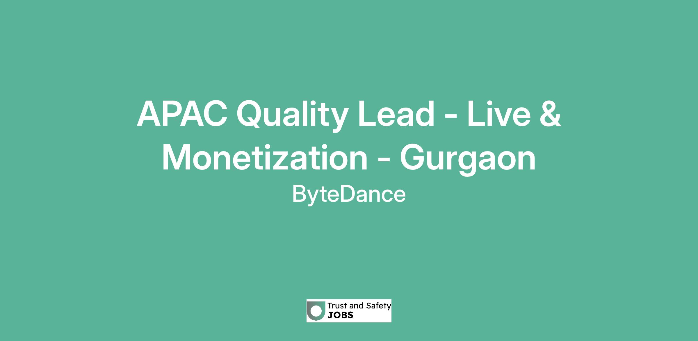 APAC Quality Lead - Live & Monetization - Gurgaon