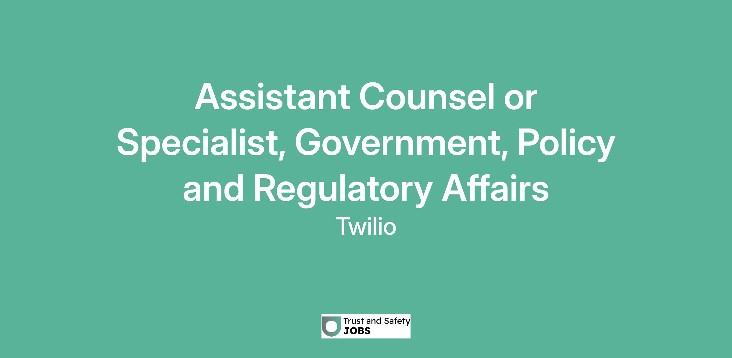 Assistant Counsel or Specialist, Government, Policy and Regulatory Affairs