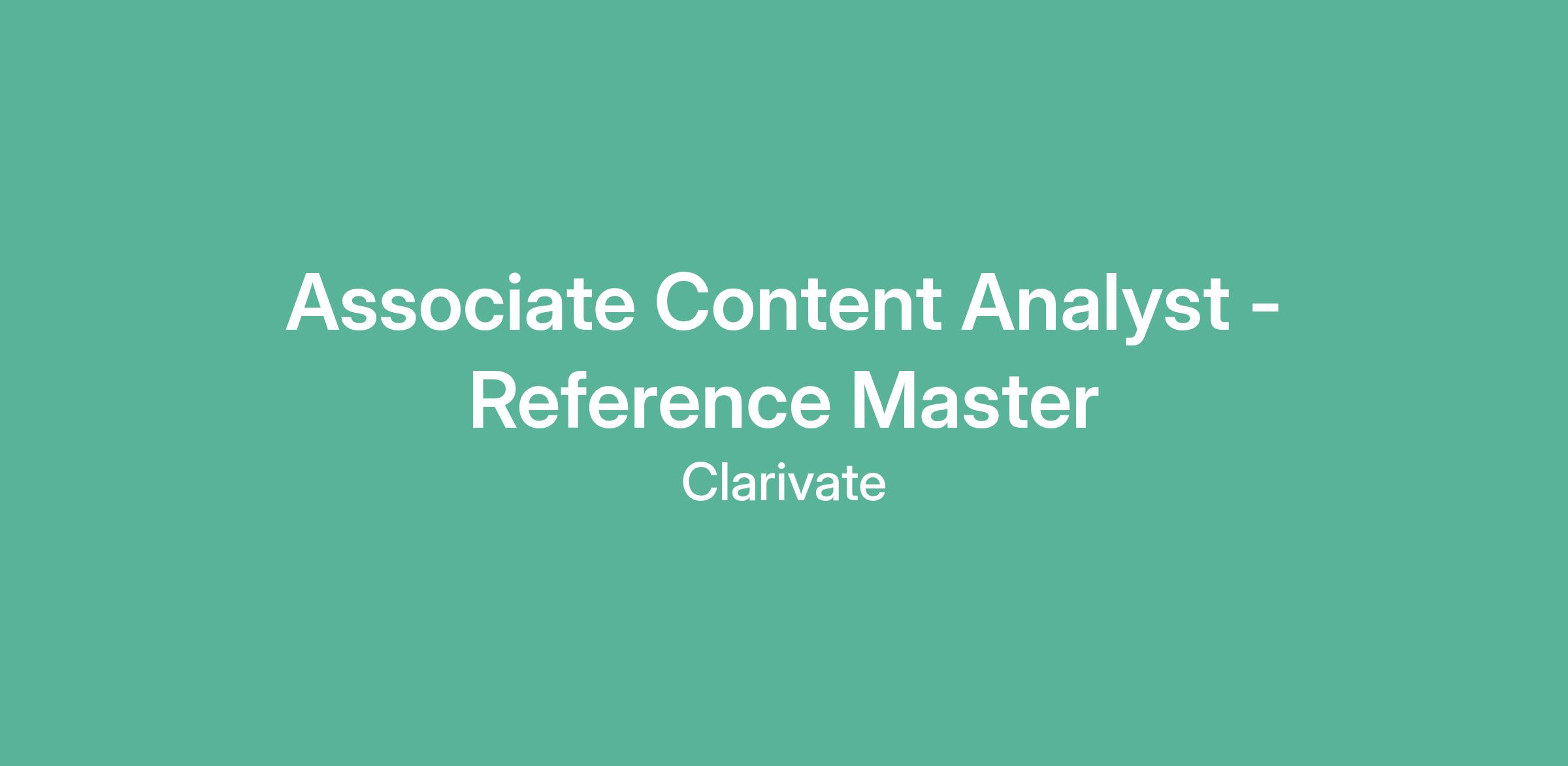 Associate Content Analyst - Reference Master