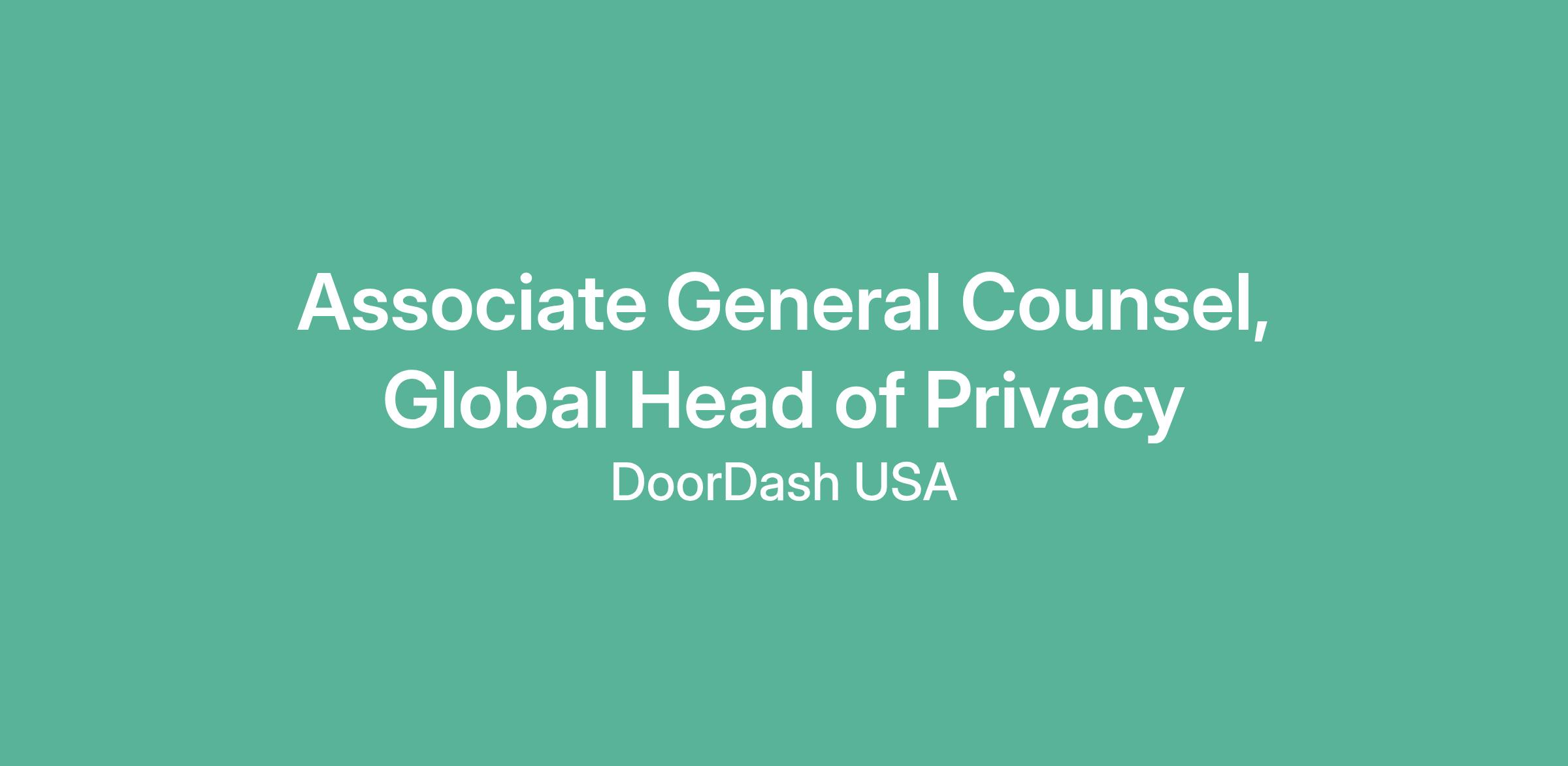 DoorDash is hiring a seasoned privacy leader to serve as our Associate General Counsel, Global Head of Privacy. In this role, you will own the strategy, design, and execution of a global privacy program that supports DoorDash’s rapid expansion, complex product ecosystem, and large-scale data operations. You will counsel senior executives, partner deeply with Product, Engineering, Security, and Operations teams, and lead a team of exceptional legal professionals responsible for ensuring the company meets its legal, regulatory, and ethical obligations.