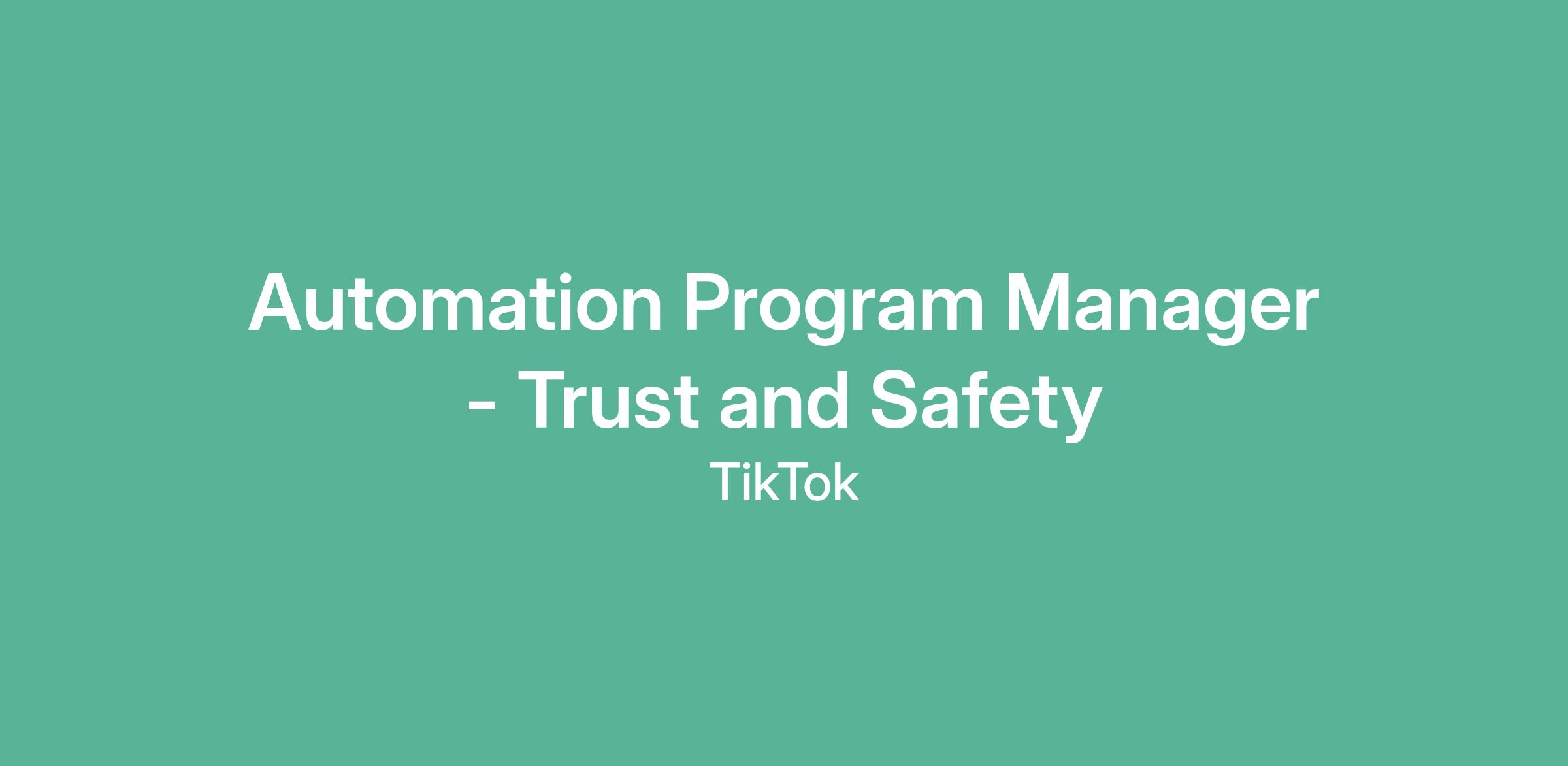Automation Program Manager - Trust and Safety