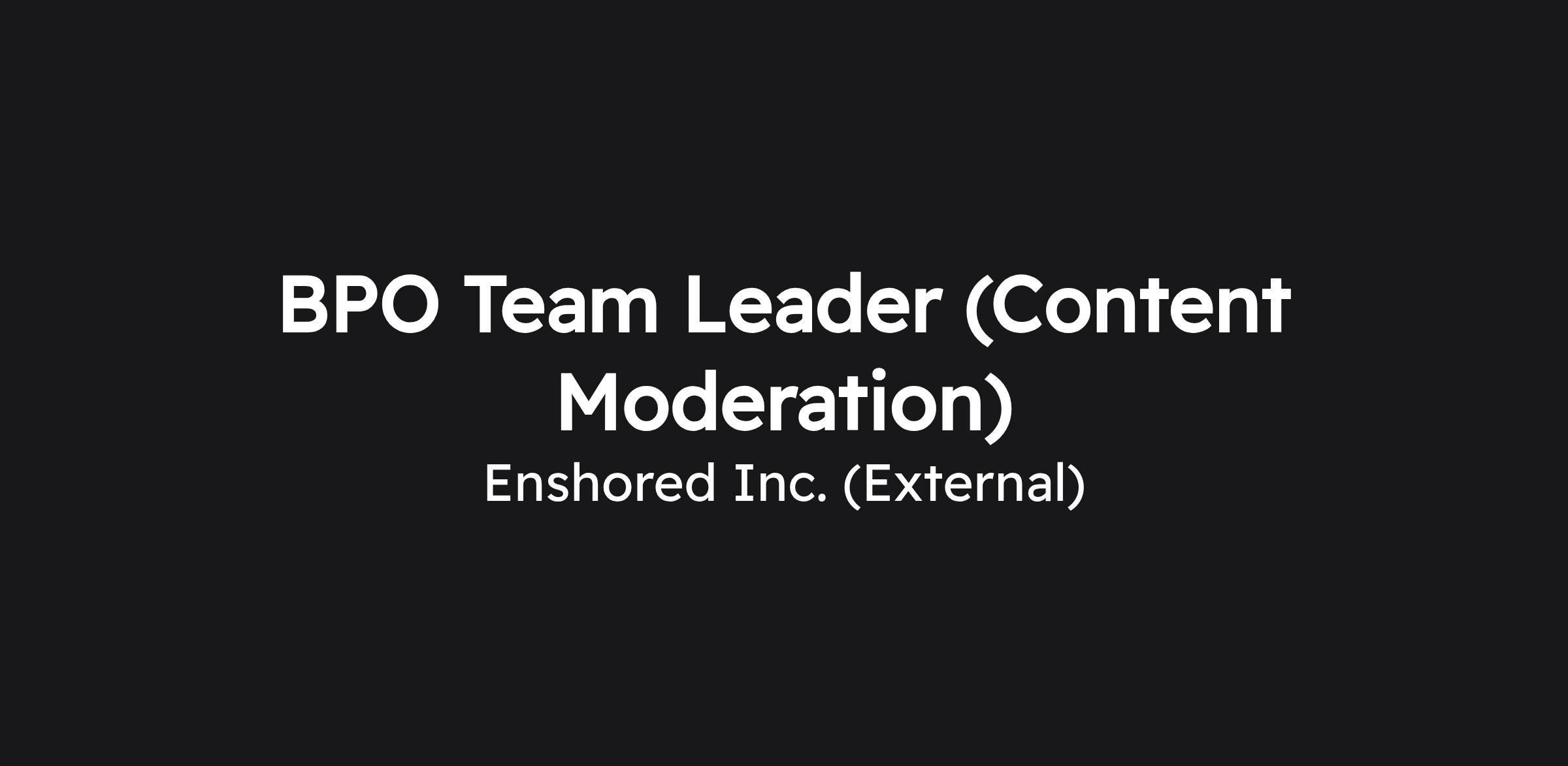 BPO Team Leader (Content Moderation)