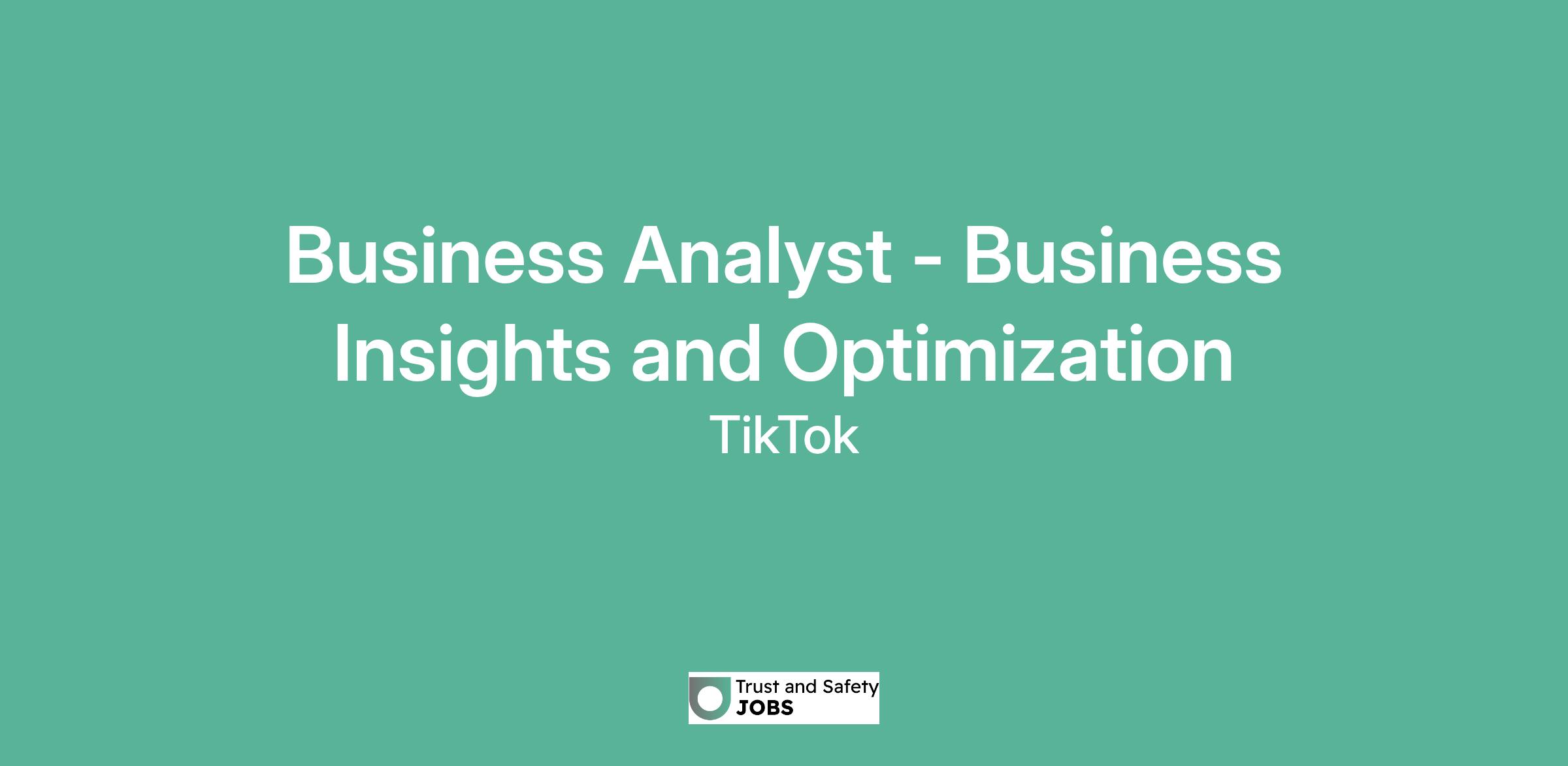 Business Analyst - Business Insights and Optimization