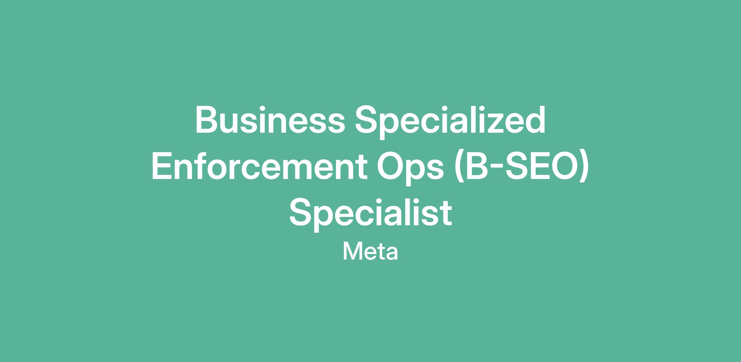 Business Specialized Enforcement Ops (B-SEO) Specialist
