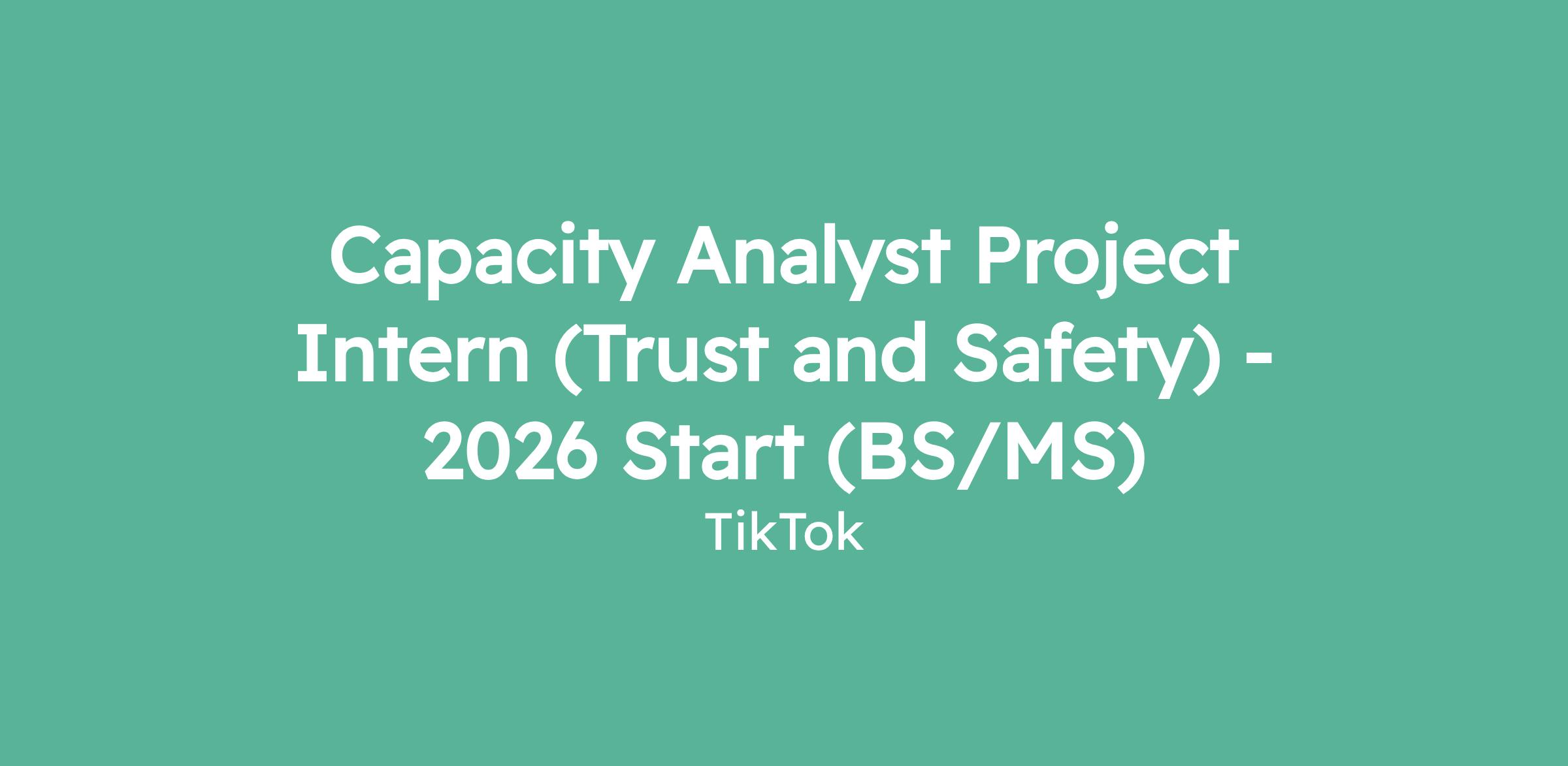 Capacity Analyst Project Intern (Trust and Safety) - 2026 Start (BS/MS)