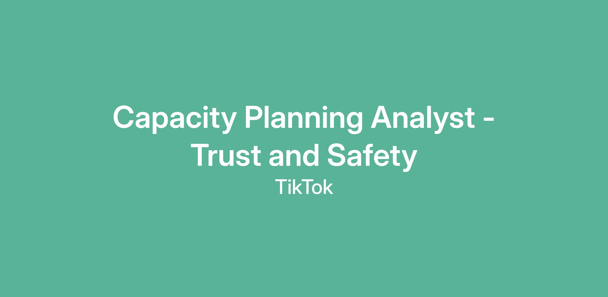 Capacity Planning Analyst - Trust and Safety