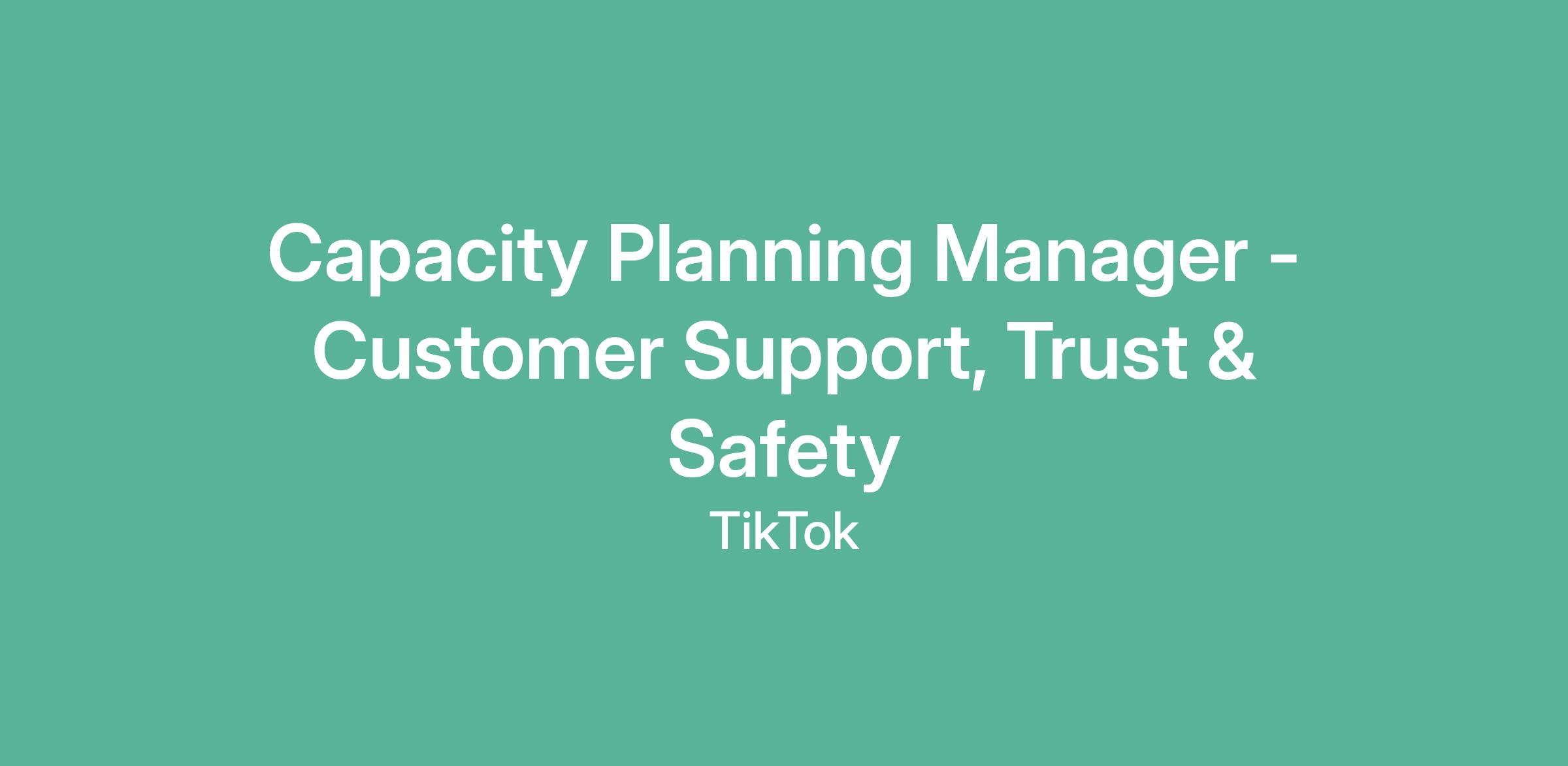 Capacity Planning Manager - Customer Support, Trust & Safety