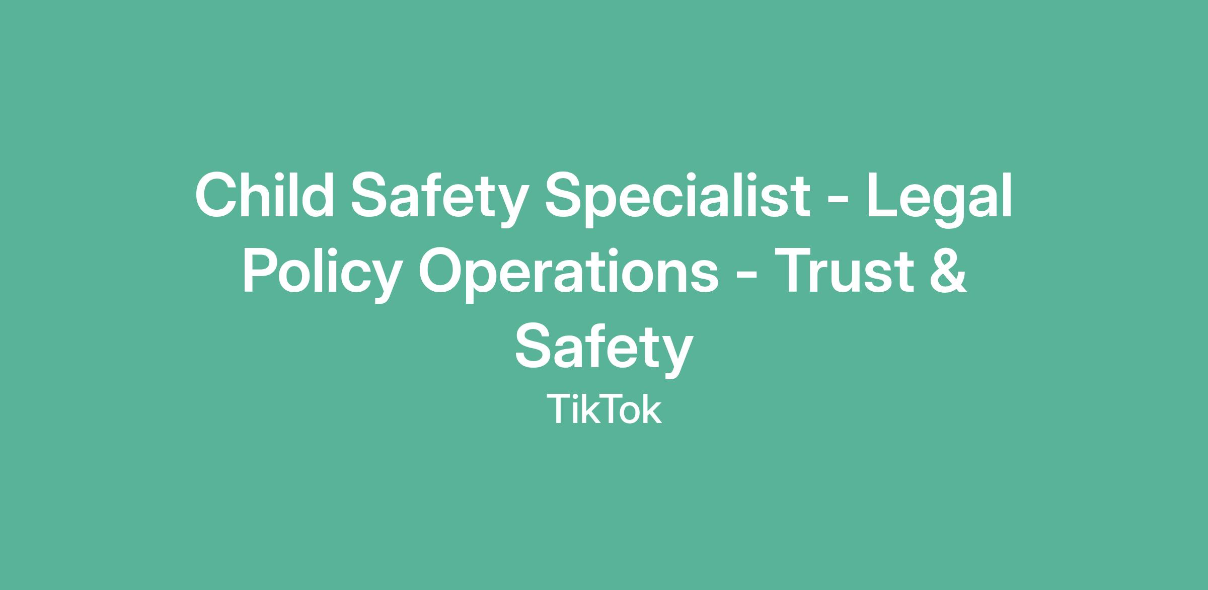 Child Safety Specialist - Legal Policy Operations - Trust & Safety