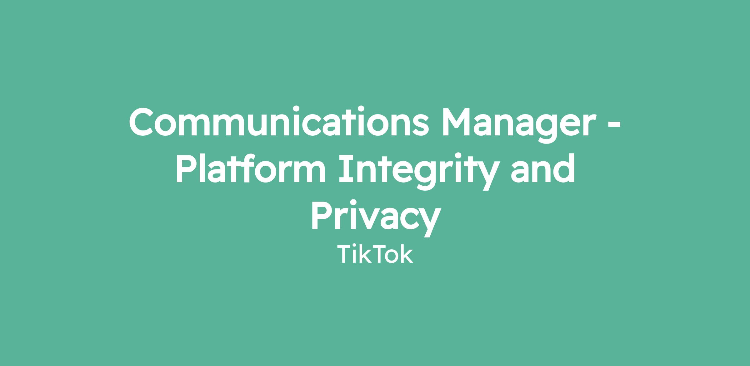 Communications Manager - Platform Integrity and Privacy