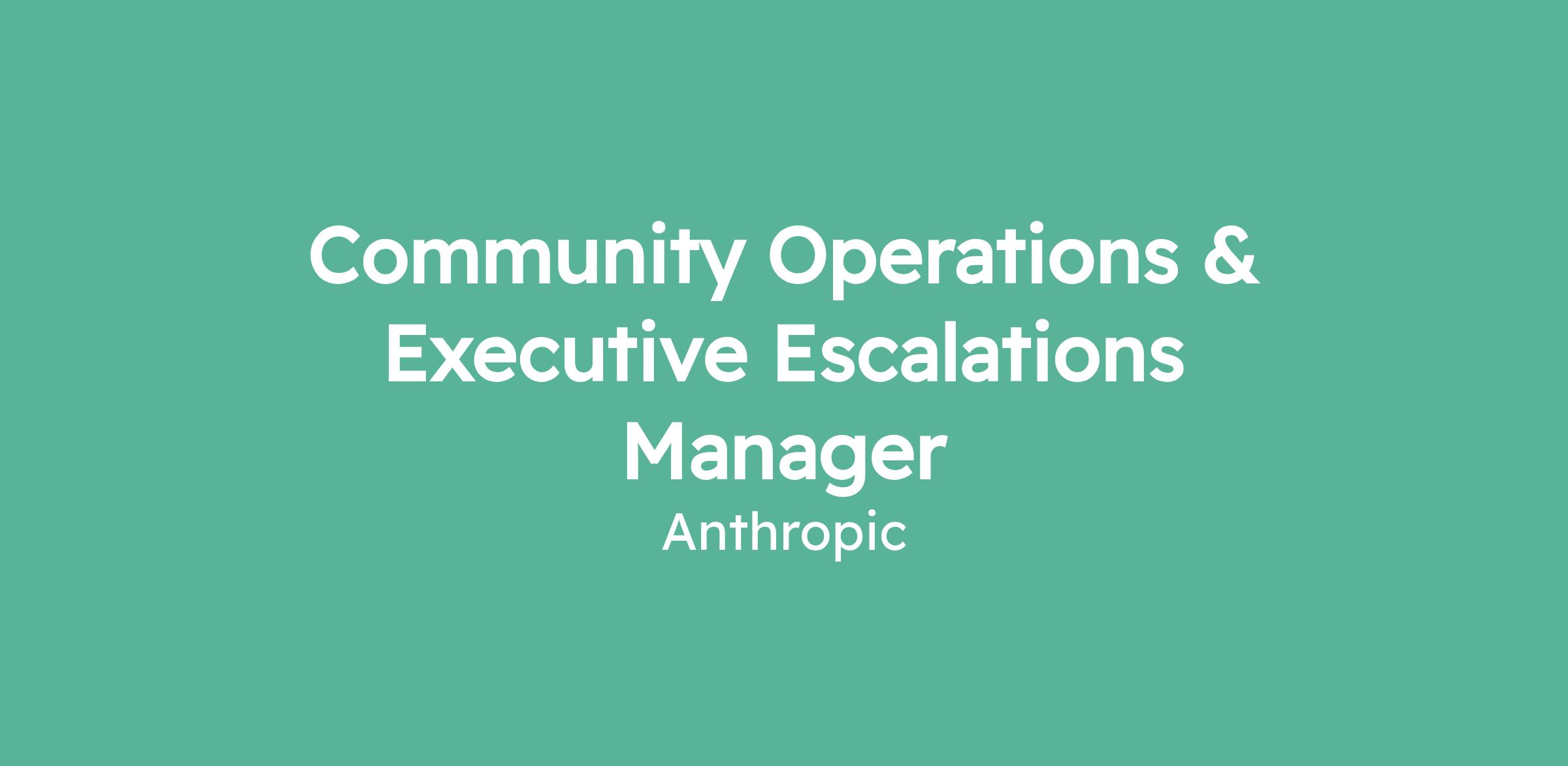 We are seeking an Operations Manager to build and lead a new pillar of our Platform Operations function: Community Operations & Executive Escalations. This role will stand up the team, processes, and infrastructure that protect Anthropic's reputation when high-stakes user issues surface on social media or arrive through executive channels. You'll own end-to-end escalation management - detection, triage, incident coordination, and resolution- across two distinct but related workstreams: brand-impacting conversations on public social channels and high-sensitivity inbound from Anthropic employees on behalf of users. The ideal candidate combines calm-under-fire incident judgment with the operational rigor to build durable systems.