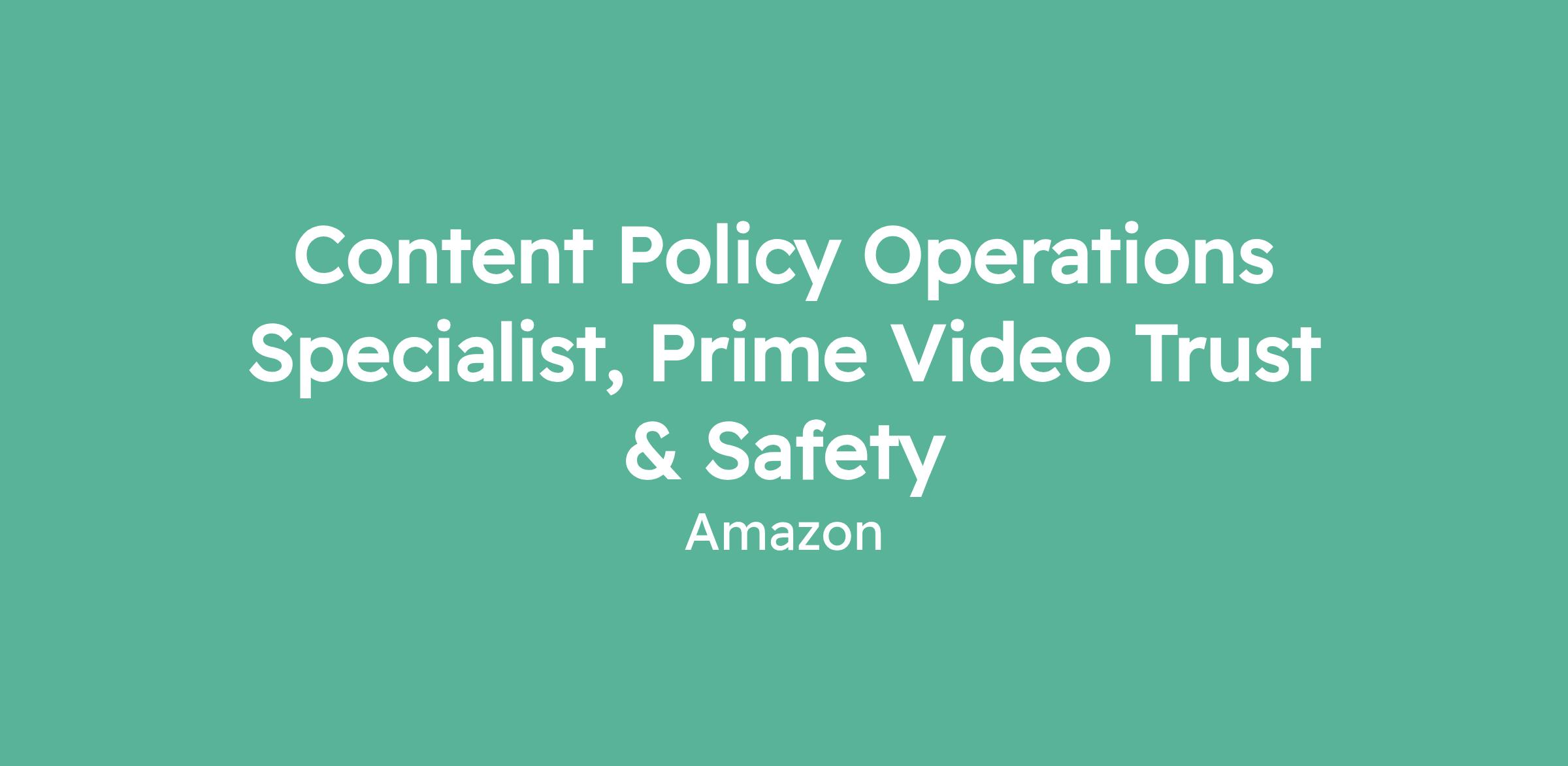 Content Policy Operations Specialist, Prime Video Trust & Safety