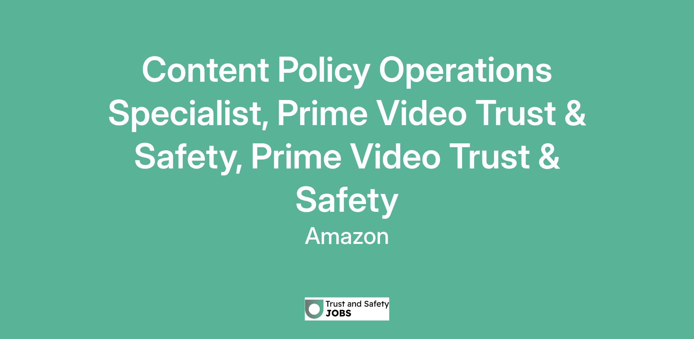 Content Policy Operations Specialist, Prime Video Trust & Safety, Prime Video Trust & Safety