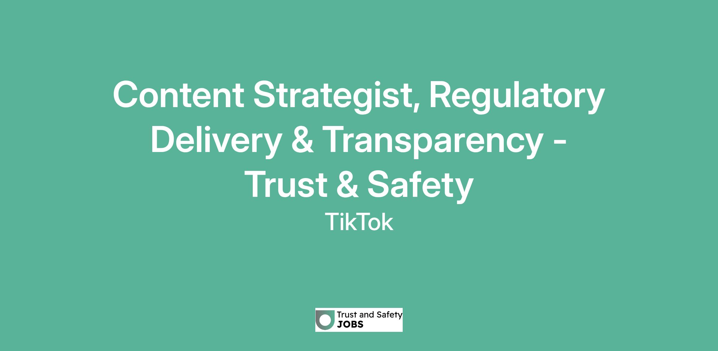Content Strategist, Regulatory Delivery & Transparency - Trust & Safety