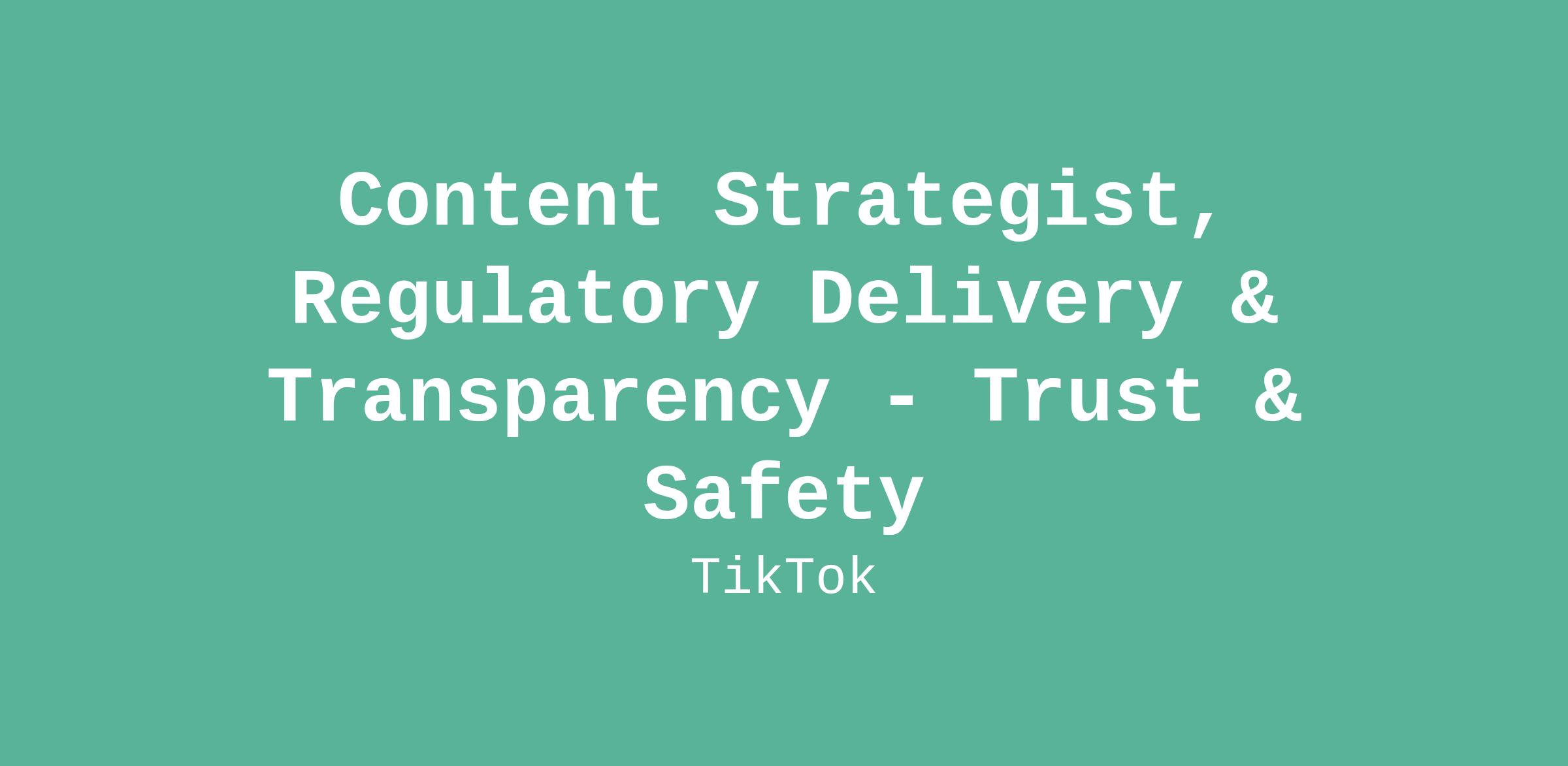 Content Strategist, Regulatory Delivery & Transparency - Trust & Safety