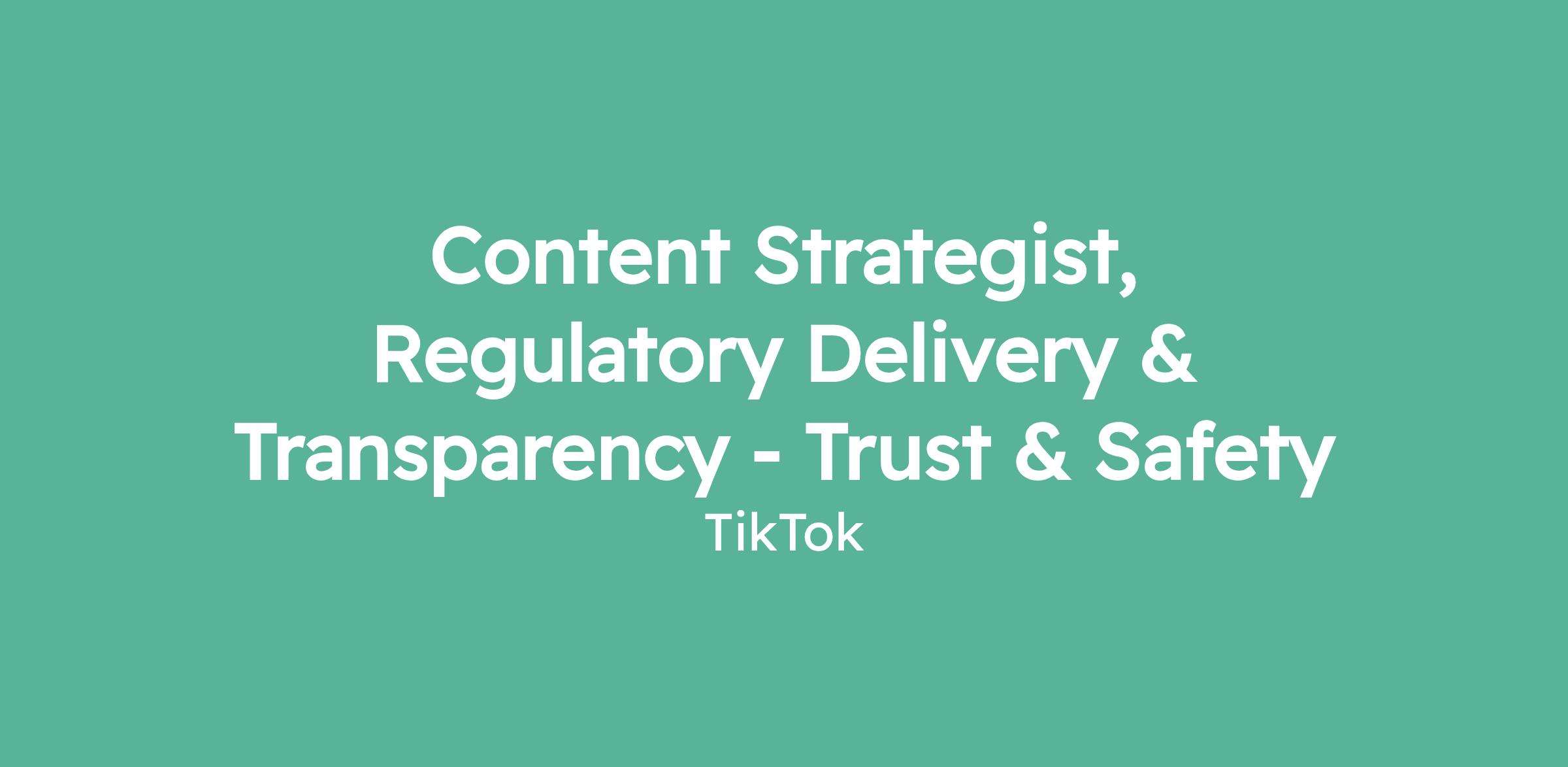 Content Strategist, Regulatory Delivery & Transparency - Trust & Safety