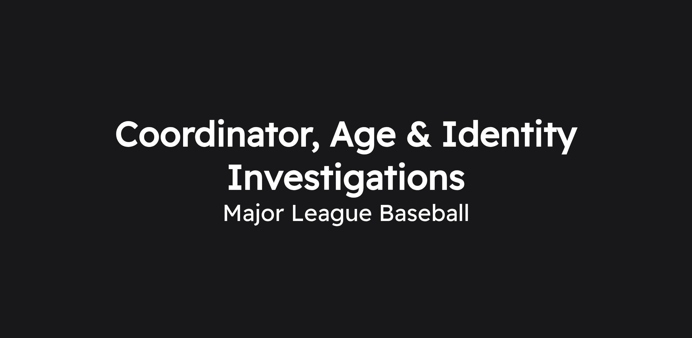 The Coordinator, Age & Identity Investigations supports Major League Baseball’s investigations into the ages and identities of amateur prospects in the Dominican Republic and other countries.  The analyst is part of a team responsible for overseeing field investigations, conducting interviews, analyzing investigative findings, and reviewing documents.