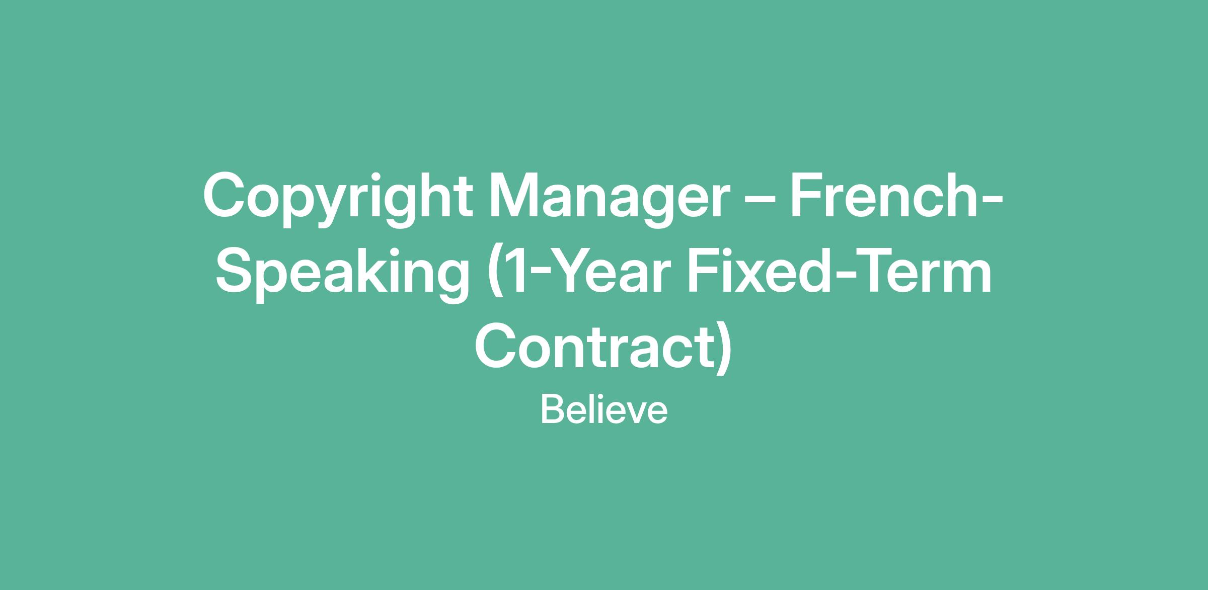 Copyright Manager – French-Speaking (1-Year Fixed-Term Contract)