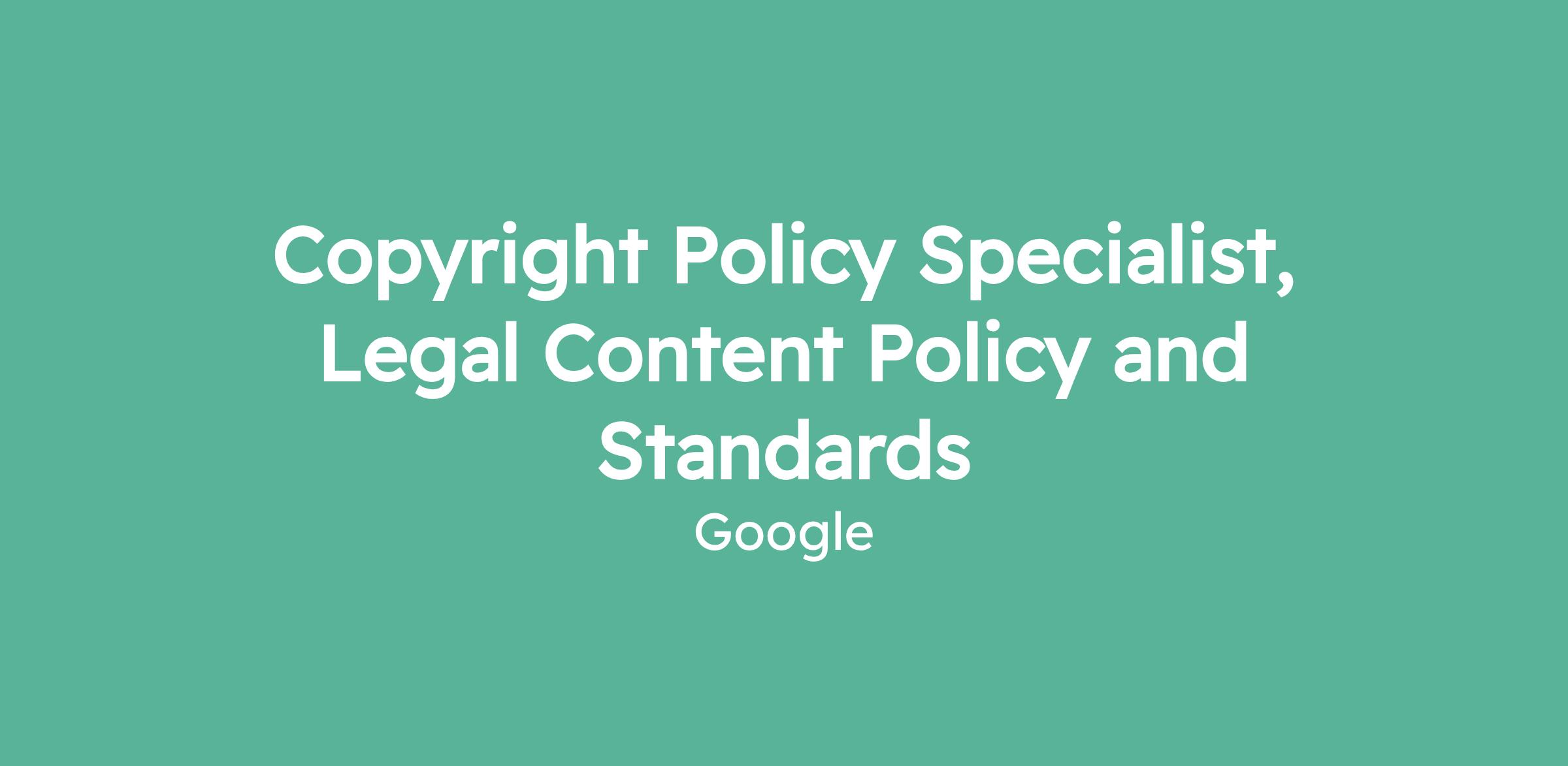 Copyright Policy Specialist, Legal Content Policy and Standards
