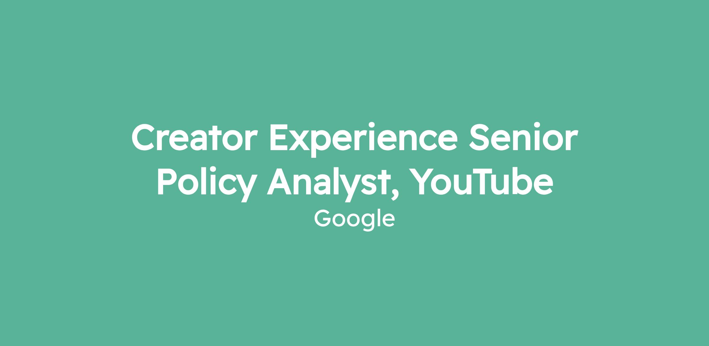 Creator Experience Senior Policy Analyst, YouTube