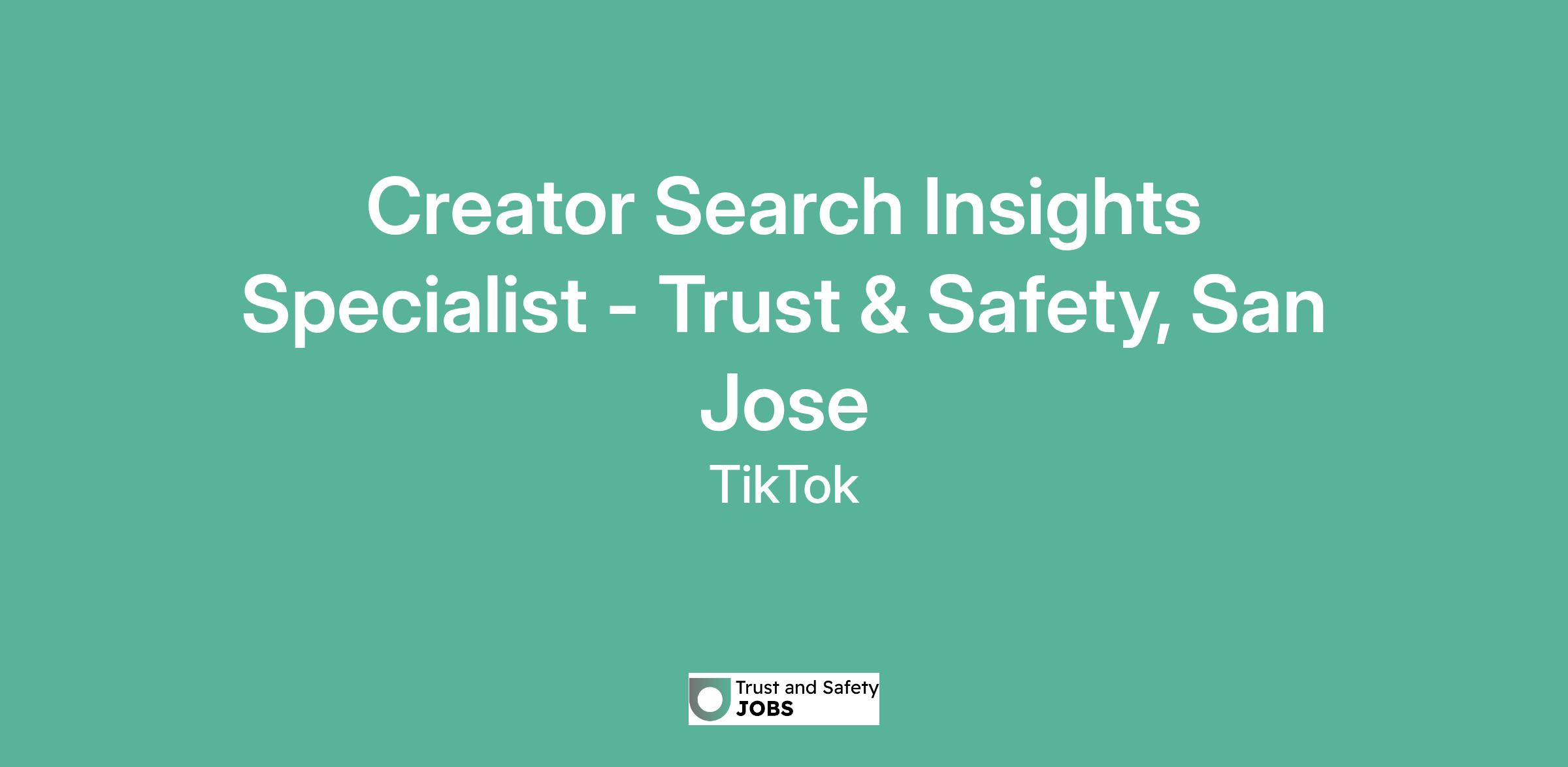 Creator Search Insights Specialist - Trust & Safety, San Jose