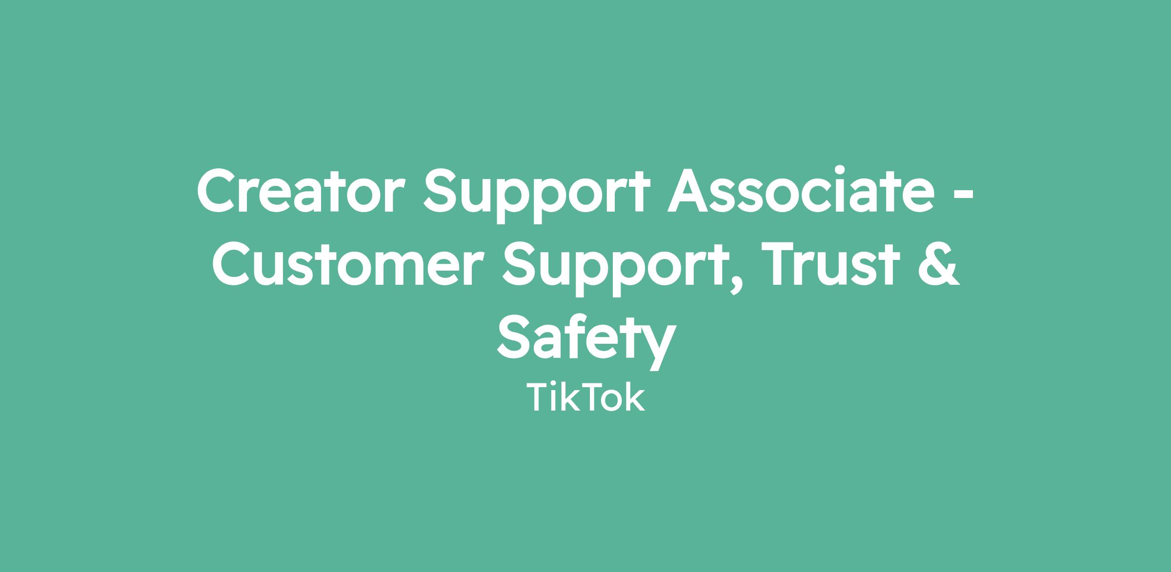 Creator Support Associate - Customer Support, Trust & Safety