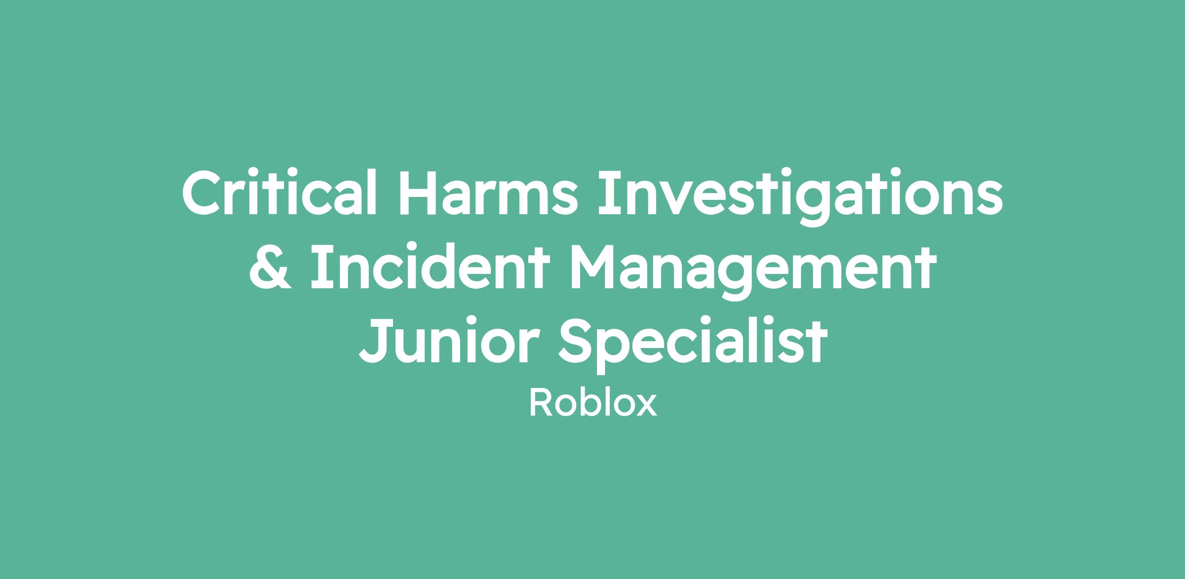 Critical Harms Investigations & Incident Management Junior Specialist