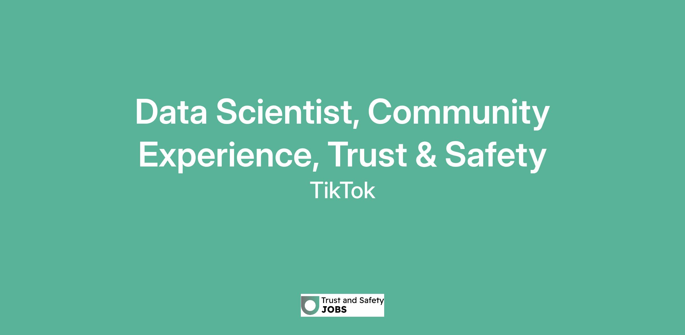 Data Scientist, Community Experience, Trust & Safety