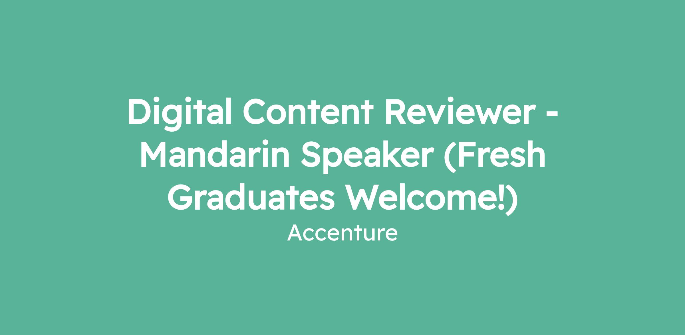 Digital Content Reviewer - Mandarin Speaker (Fresh Graduates Welcome!)
