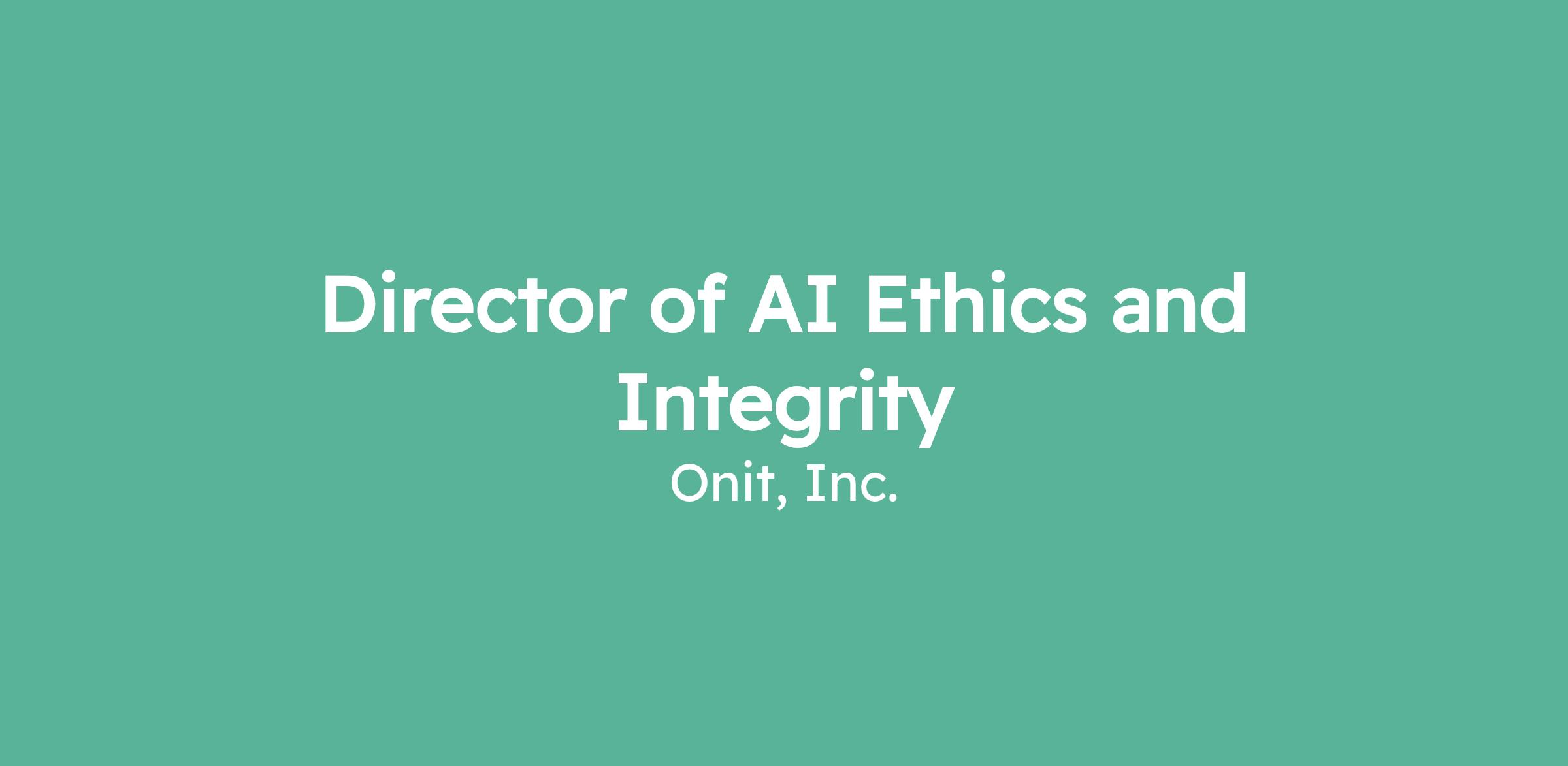 • The Director of AI Ethics and Integrity leads Onit's AI red team function, responsible for rigorous validation of all AI-powered products, both legal AI features and general LegalOps automation, before release to customers.