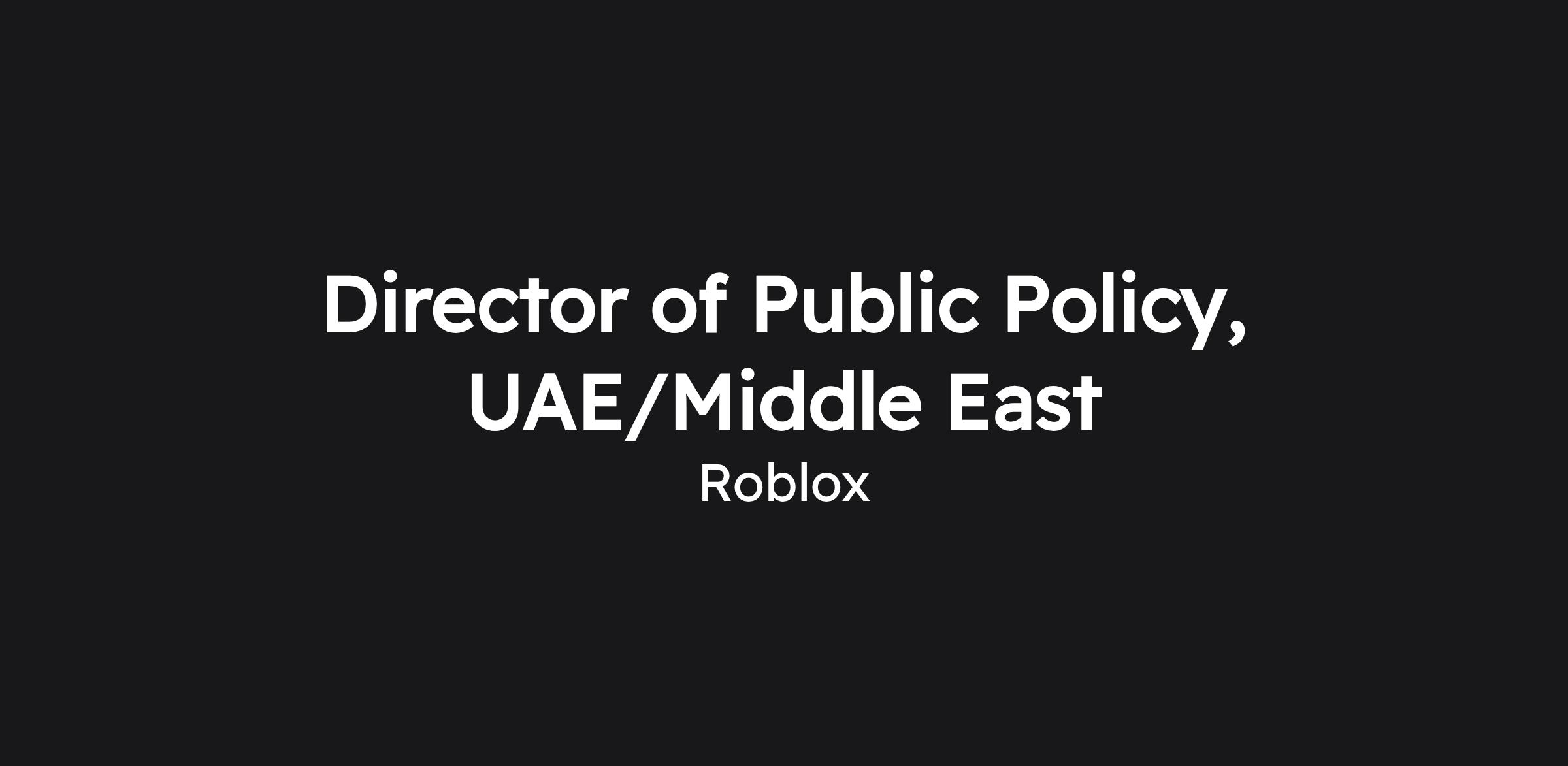 The ideal candidate is a strategic thinker, driven to develop and execute creative strategies that advance Roblox’s business and priorities within the region. This position is based in Dubai and reports directly to the Head of Public Policy, Europe and MENA. The Director of MENA Public Policy will play a critical part in shaping Roblox's future in the country by establishing and executing effective public policy strategies. This role is instrumental in ensuring compliance, addressing policy issues, and fostering strong relationships with external partners, ultimately contributing to a safer and more engaging environment for Roblox's global community of developers and creators.