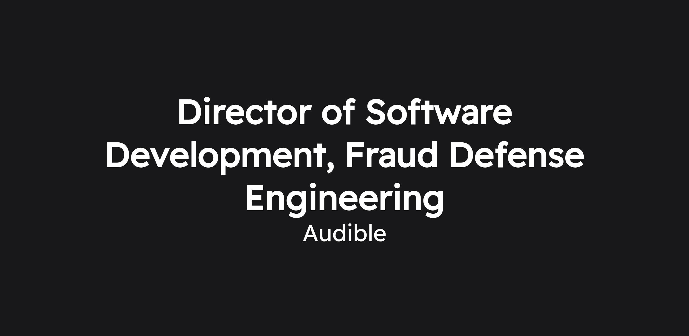 As the Director of Software Development for Fraud Defense Engineering, you will lead the engineering team responsible for protecting Audible's business integrity. Your primary focus will be Fraud Defense — designing, developing, and scaling the tools and platforms that proactively detect, prevent, and mitigate fraud and piracy across all Audible marketplaces. You will also provide engineering leadership for Strategic Data Regulation and Technology Resilience initiatives, ensuring Audible's services are recoverable, compliant, and trustworthy.