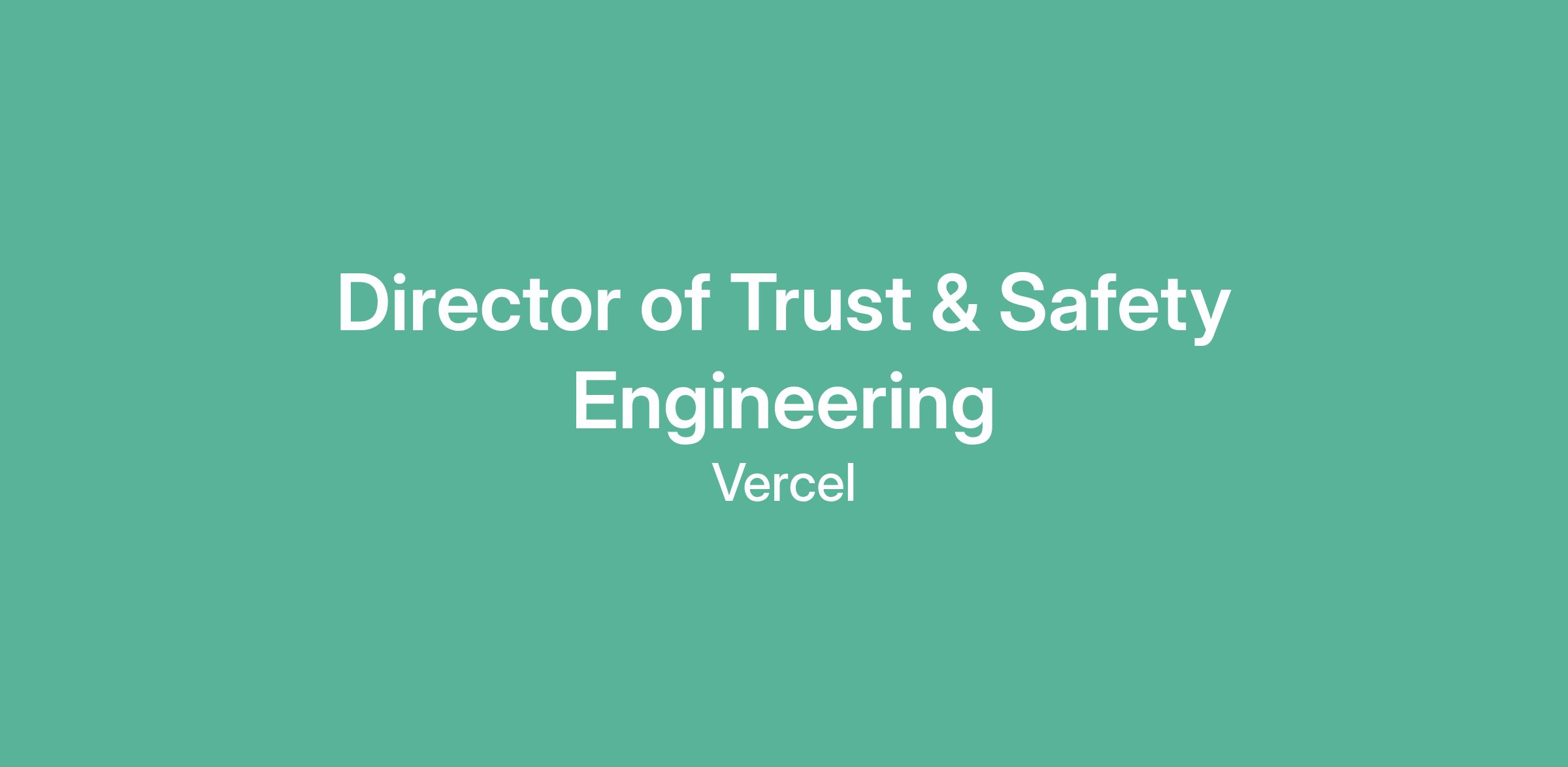 We are looking for a Director of Trust & Safety Engineering to join our Security organization. You will lead a multidisciplinary group of software engineers and Trust & Safety professionals responsible for protecting Vercel’s platform, developers, and end users. Your teams will design and scale systems that prevent abuse, detect fraud, and uphold platform integrity. This role combines deep engineering leadership with strategic oversight of safety and fraud programs, ensuring our platform remains secure, compliant, and trusted by developers worldwide. You will report to the CTO, Security.