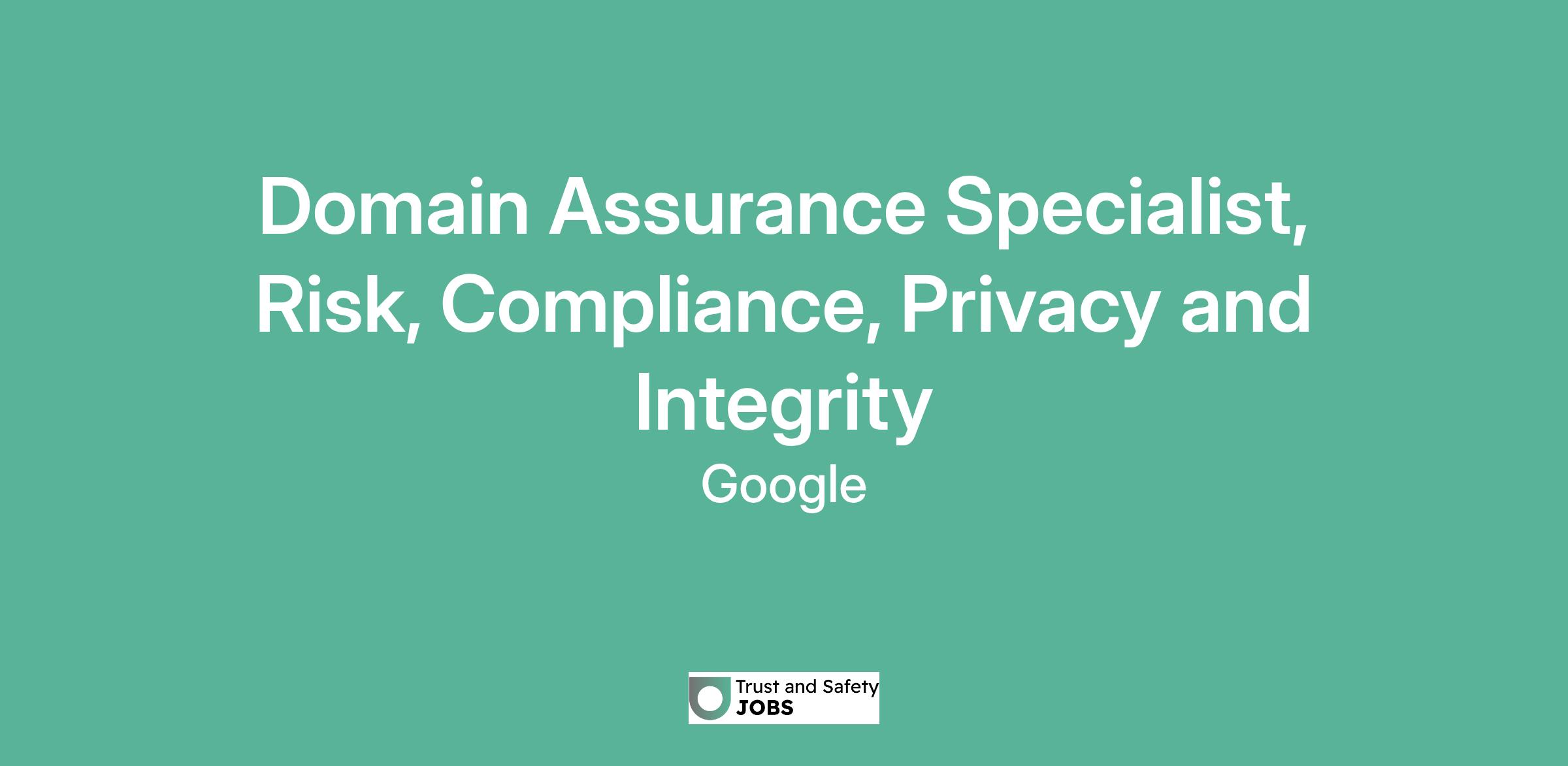 Domain Assurance Specialist, Risk, Compliance, Privacy and Integrity