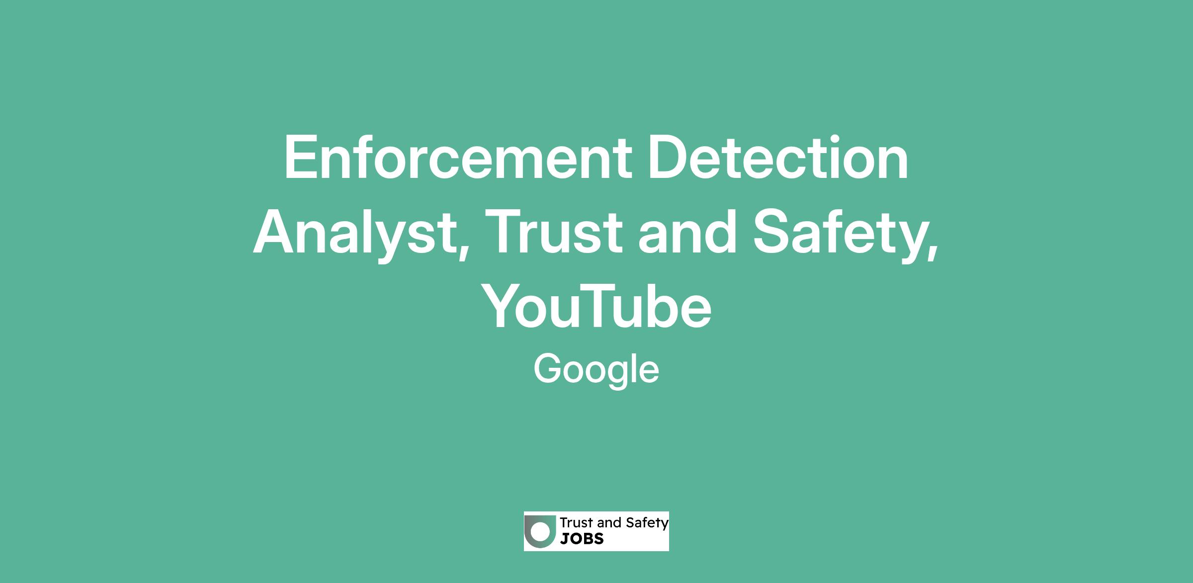 Enforcement Detection Analyst, Trust and Safety, YouTube