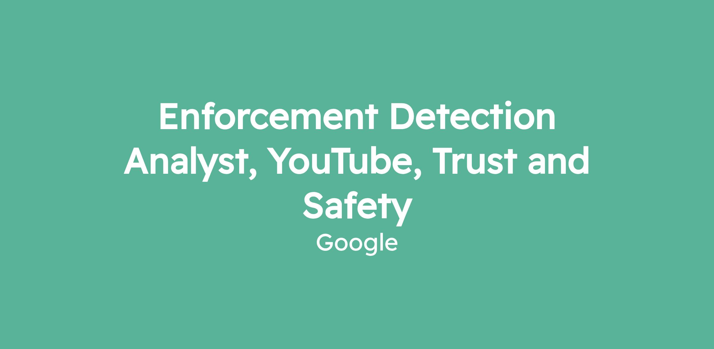 Enforcement Detection Analyst, YouTube, Trust and Safety