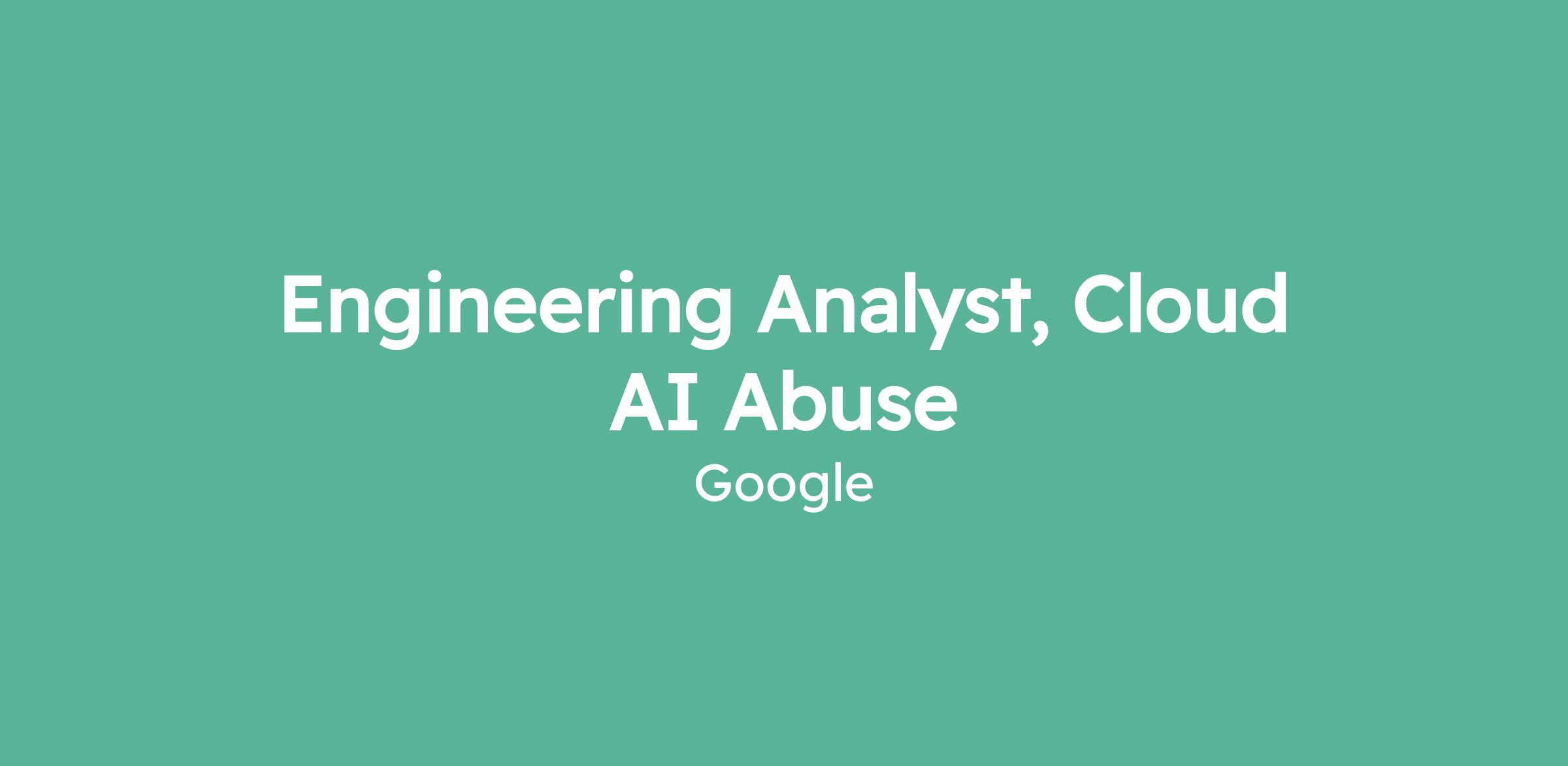 Engineering Analyst, Cloud AI Abuse