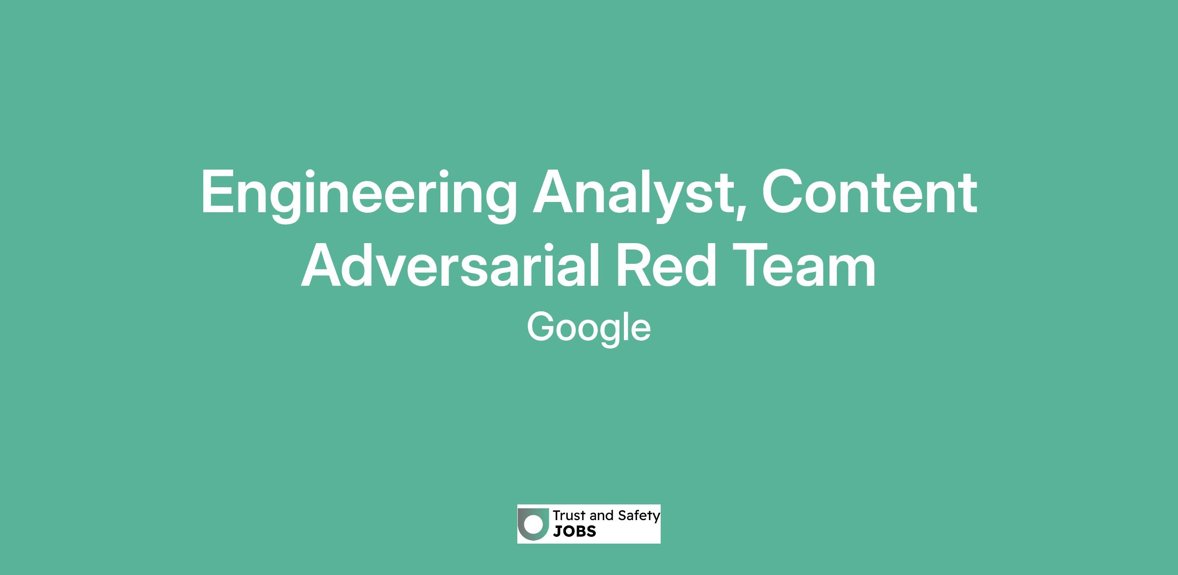 Engineering Analyst, Content Adversarial Red Team